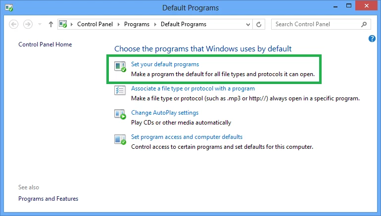 4. Tap/click "Set your default program" in the Default Programs dialog.