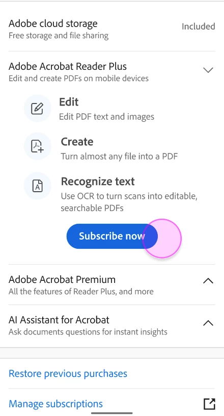 I want to read PDFs on my iPad and use the OCR feature. Yesterday, the software displayed a recommendation for Reader Plus, but I closed it. Now I want to subscribe to this package, but I can’t find the option. Please tell me how to open this subscription. OCR is very important to me.