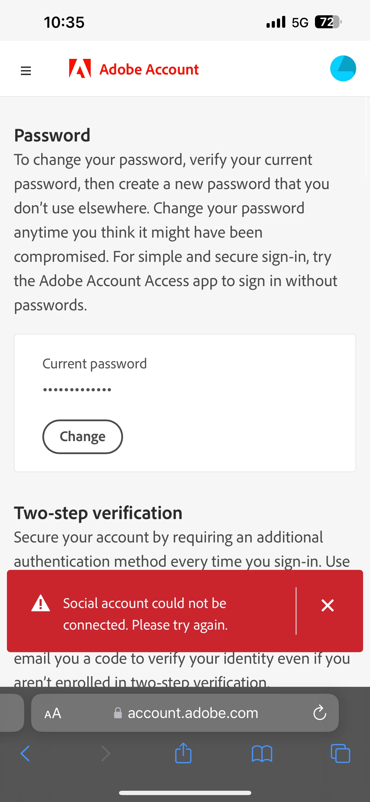 When I try to sign in by apple id it's not working, and when I sign in by adobe account and try to connect apple account with adobe account it's still not working
