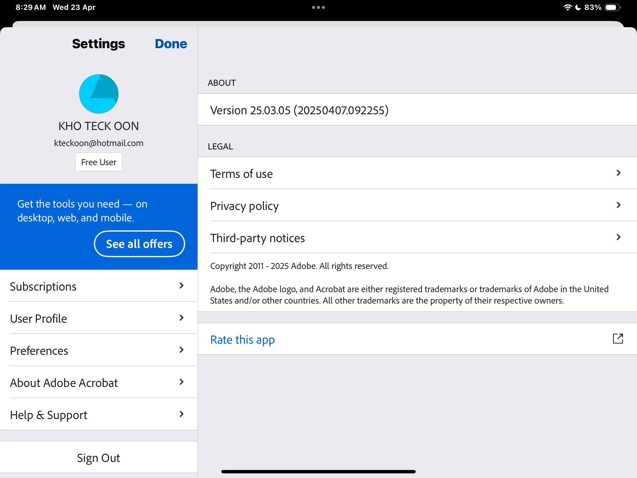 You may also check the self help page https://helpx.adobe.com/acrobat/mobile-app-faq.html for future reference.