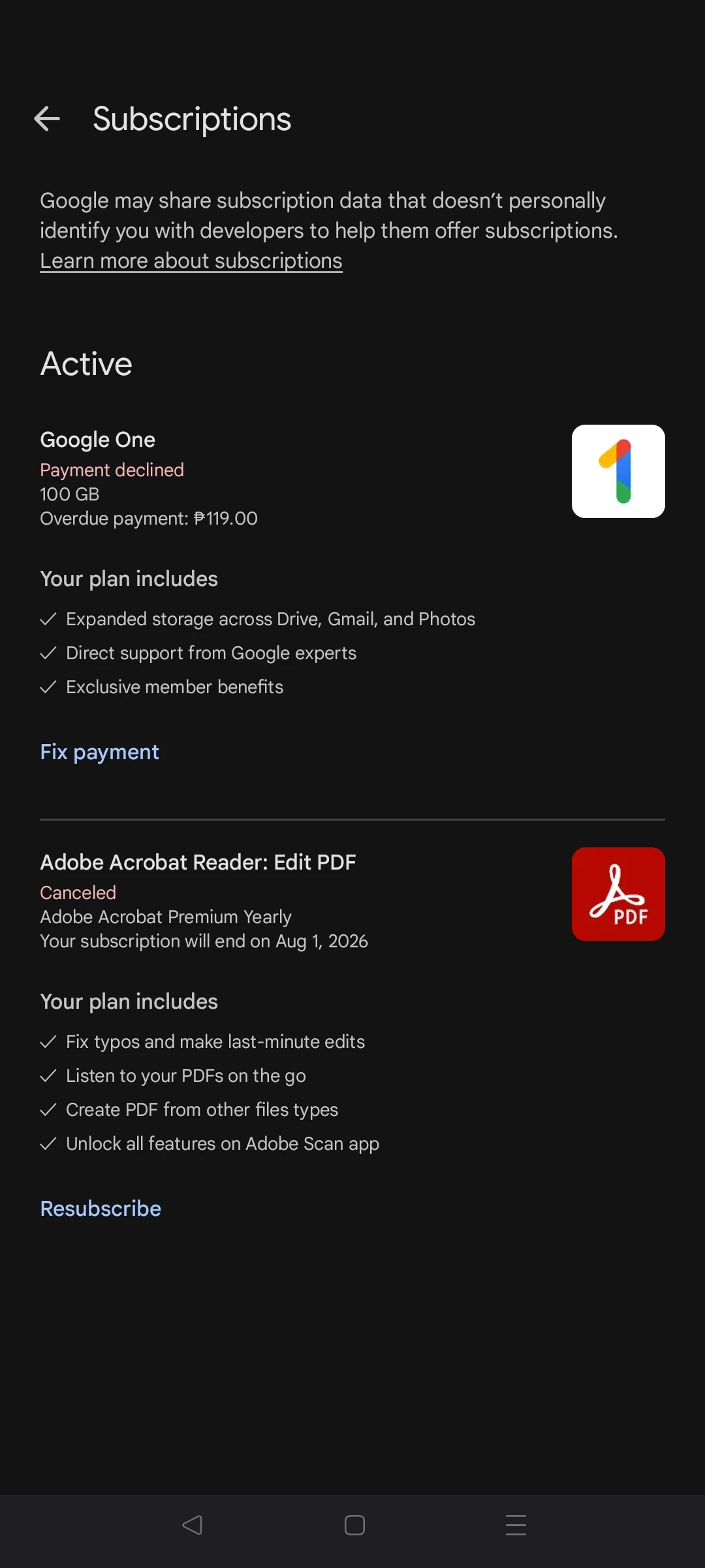 Dwinrel, thanks for posting about your recent subscription commitment through the Google Play app store. I am sorry you are not finding more value in the use of our services. Please see https://adobe.ly/3HhixGJ for steps you can take to cancel the subscription through the Google Play store. Please complete the process soon, if you wish to receive a refund, Dwinrel. ^JW