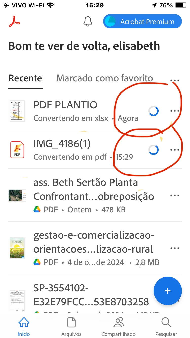 sistema IOS; sou assistente Adobe; há dois arquivos (uma tabela xlsx e uma imagem) que não finalizam a conversão para PDF e não podem ser eliminados... o que devo fazer ?grata desde já