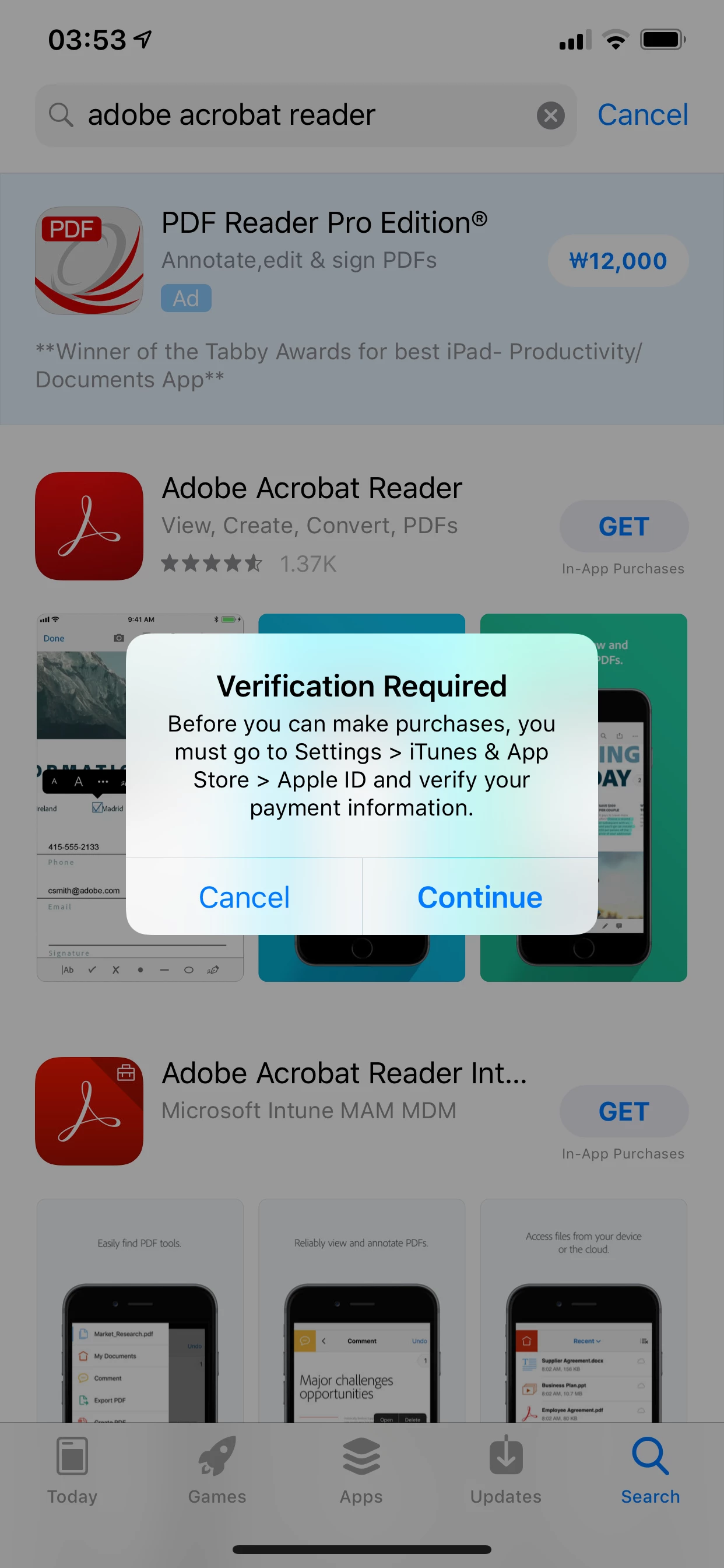 I am trying to install Acrobat Reader in iPhone XS Max.
