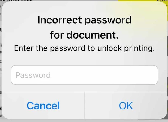 Issues printing password protected documents on iOS devices