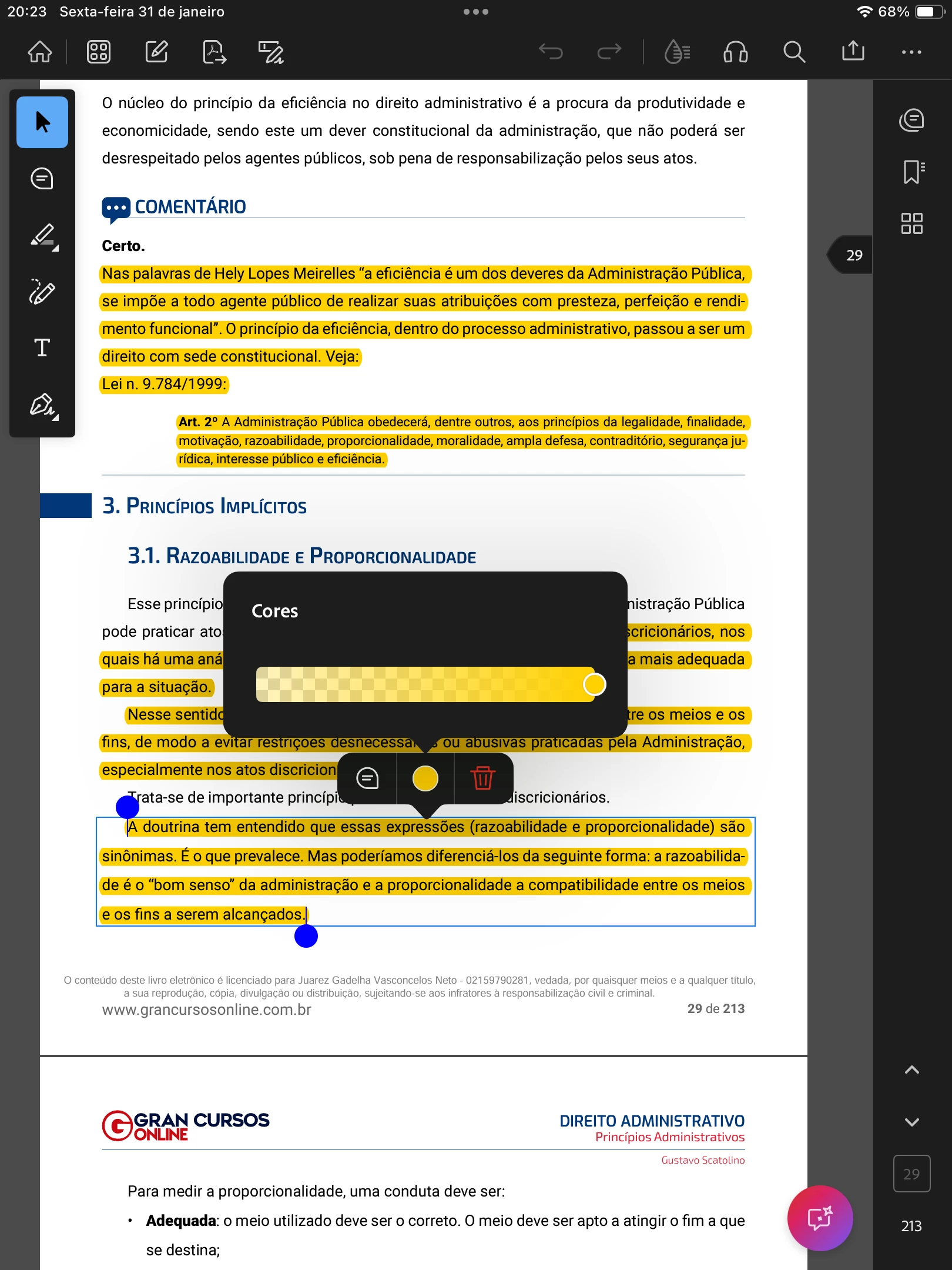 Essa é uma dúvida para o suporte. Utilizo o Adobe pelo iPad. No leitor de PDF, na funcionalidade de "Realçar", uma espécie de marca texto, foi modificada? Quando clico na parte marcada, aparece a opção de adicionar comentário, excluir a marcação ou mudar a cor da marcação, contudo, agora não há a opção de mudar a cor, só a tonalidade. Isso atrasa bastante a dinâmica da leitura se você utiliza a ferramenta de realçar textos com diferentes cores. Entendo que toda atualização vem para somar e melhorar a experiência para o usuário, porém, essa alteração/atualização veio para atrapalhar e piorou a leitura com marcações no PDF. Por favor, retornem com a opção de mudar a cor do texto marcado quando o selecionamos.