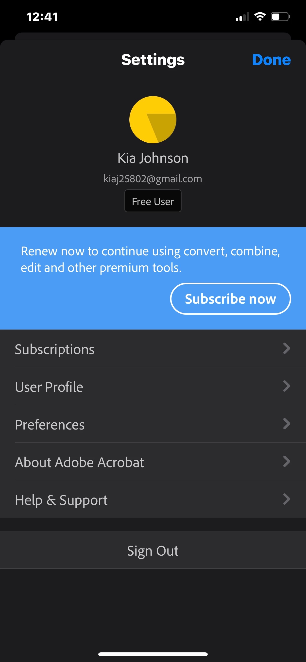 I've been using premium on the ipad for months know. My subscription is good until October 22. And today whenI opened the app it wouldn't let me get to my adobe cloud files and says I was up as a "free user" - although it does list me as having the premium subscription. I've put a screenshot below. Help. I need to get to my files.