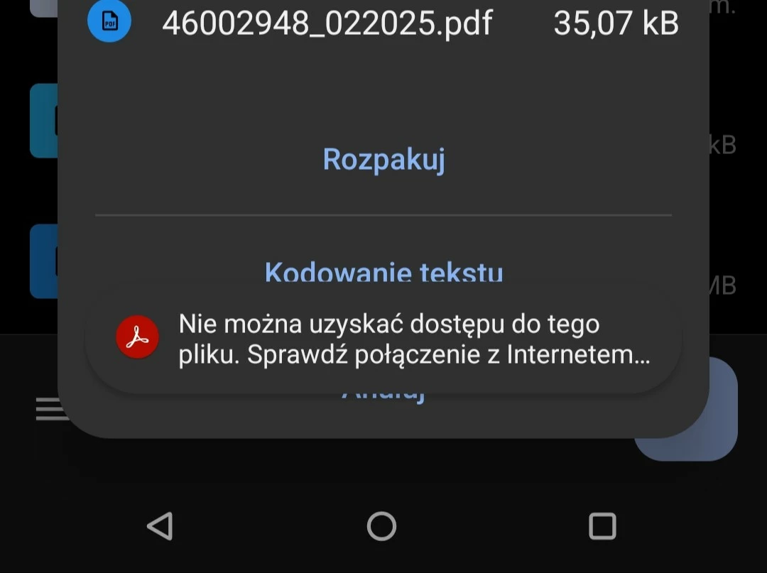 Nie mogę otwierać plików PDF zabezpieczonych hasłem na telefonie. Pojawia się komunikat ''nie można uzyskać dostępu do tego pliku. Sprawdź połączenie z internetem''