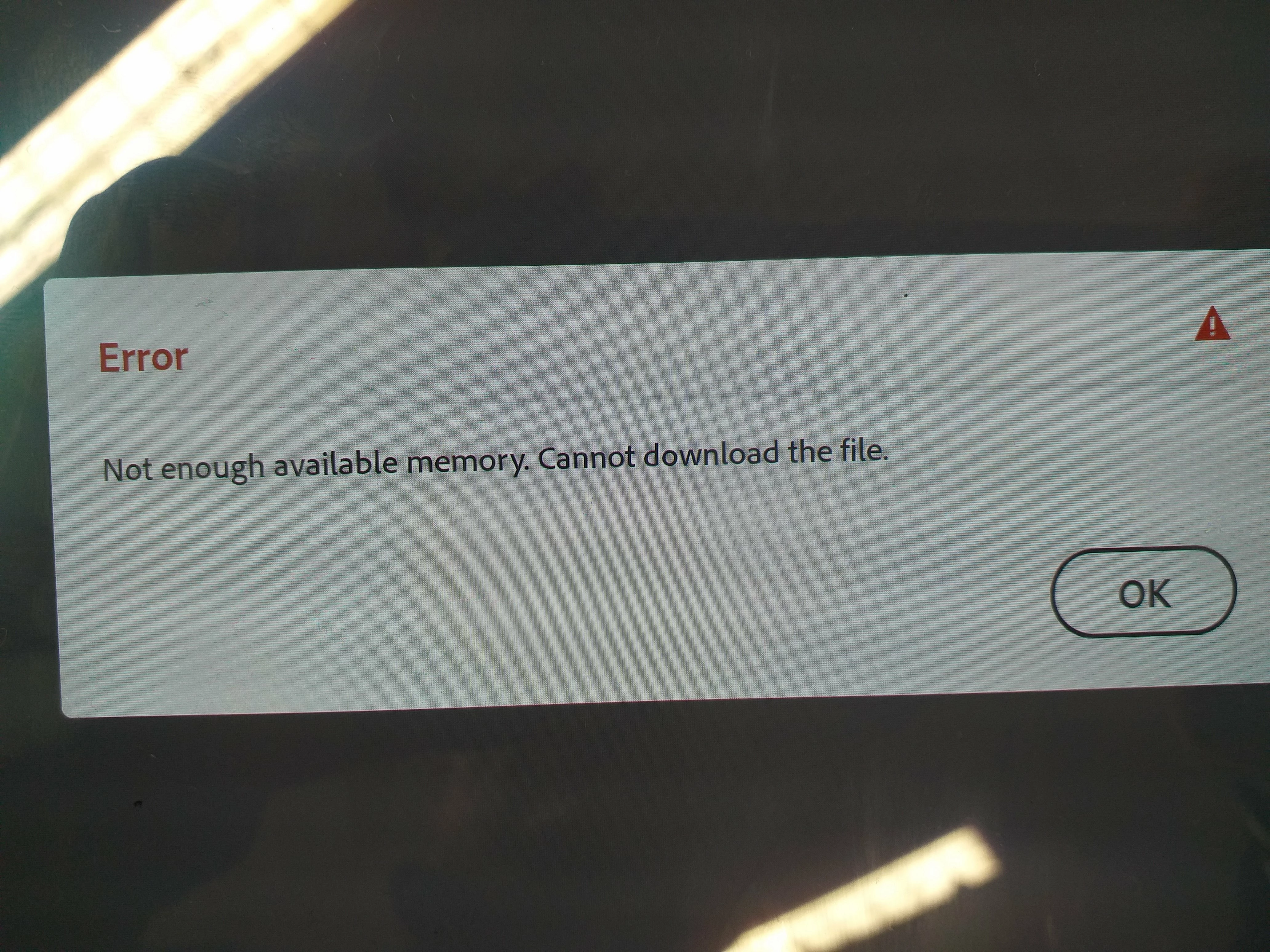 Not enough available memory. Cannot download file