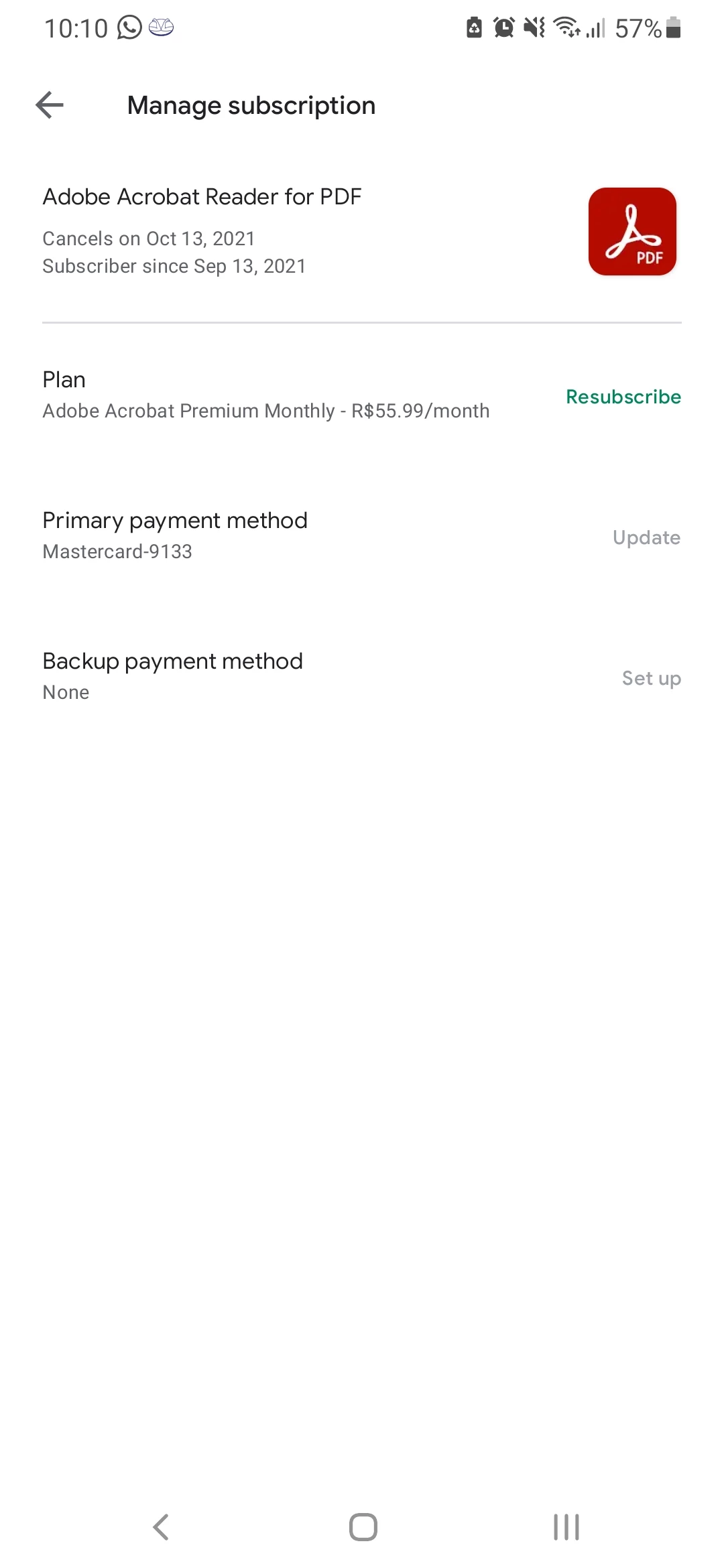 Google manages the Acrobat Reader premium subscription purchased from Google Play Store. You can cancel your subscription using the Google Play Store app on your Android devices.