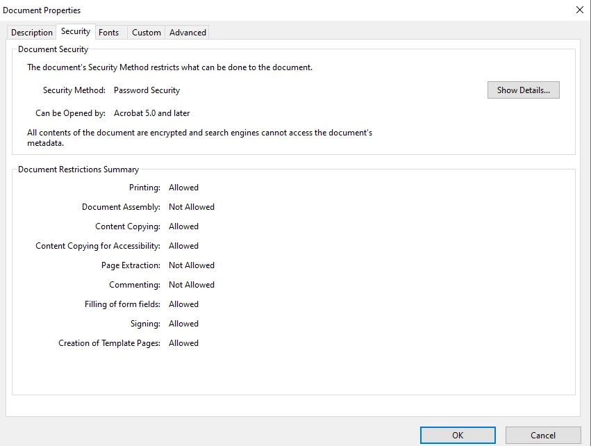 The document is password protected and allows signing, filling form and even content editing.