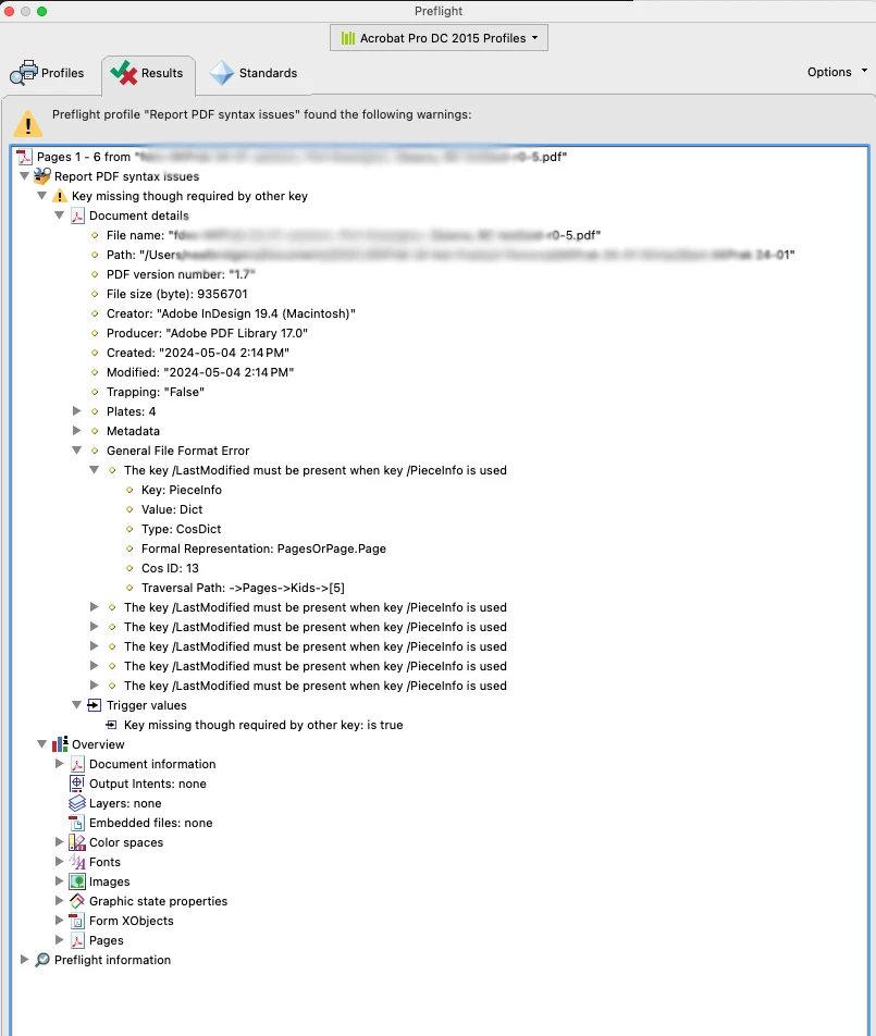 When I use Acrobat to analyze the file I see "Key Missing though required by other Key".