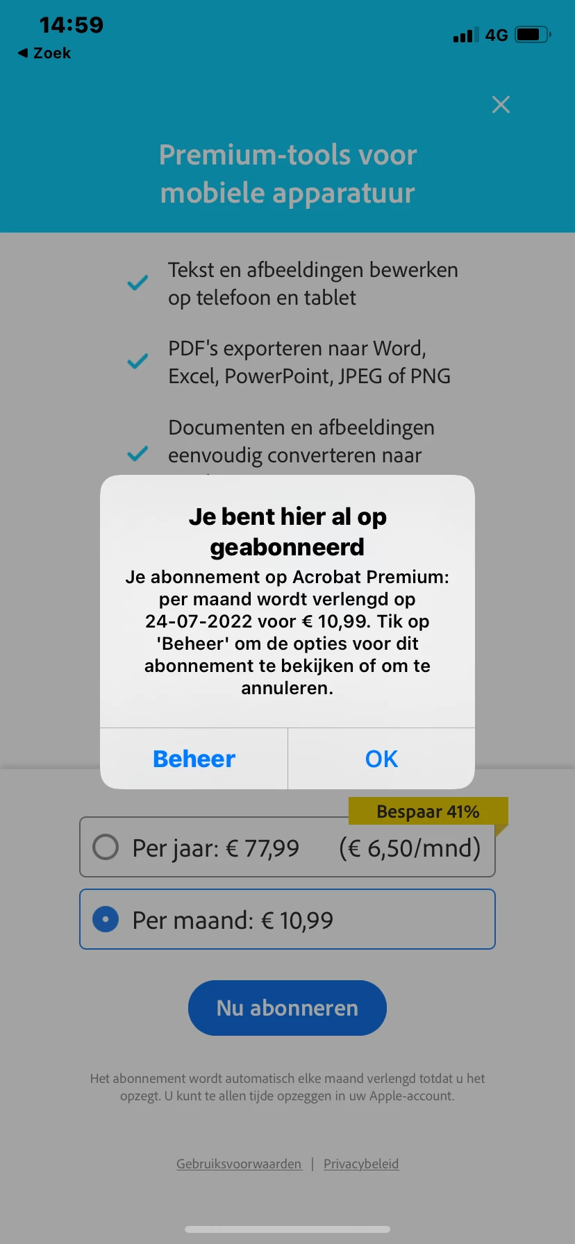 You see when I supposedly have to purchase again for Adobe, it indicates I am already premium and that an error has been determined.