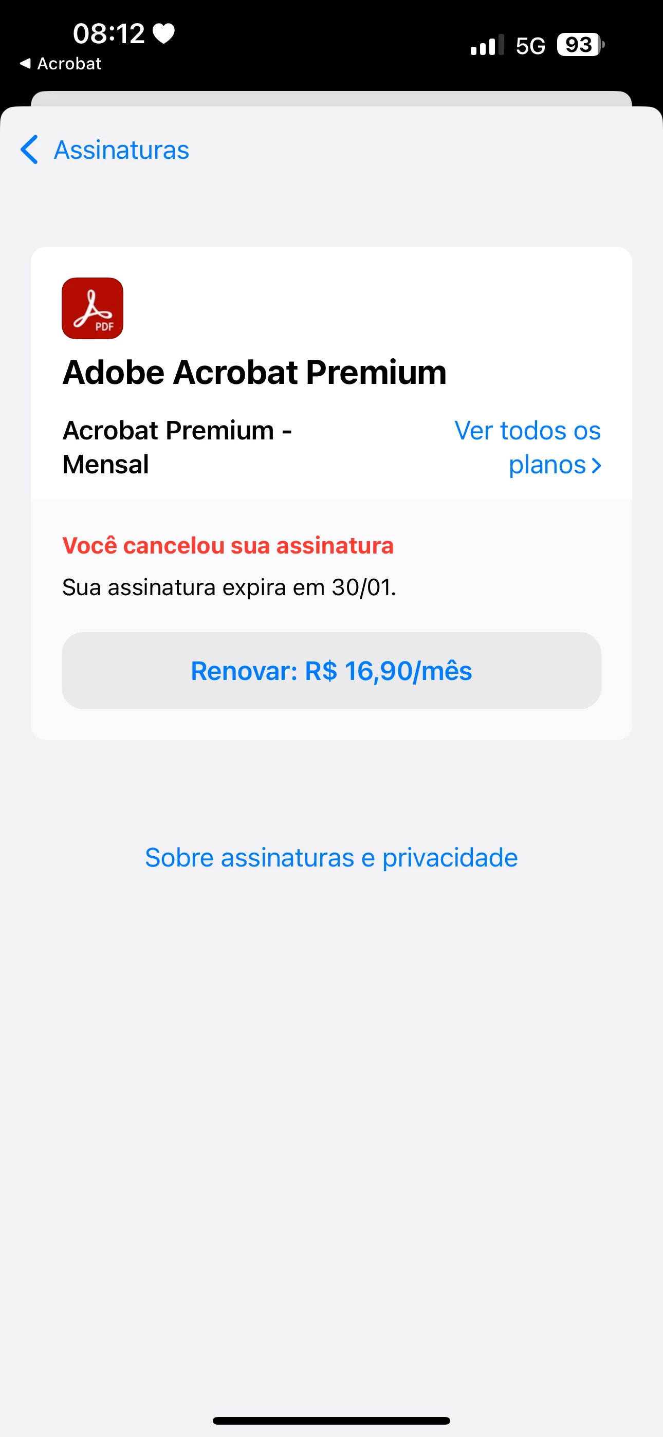 Eu cancelei antes do período grátis terminar. E assim que cancelei foi cobrada a assinatura. Quero o reembolso. Estou enviando print da tela da Adobe onde está cancelado.