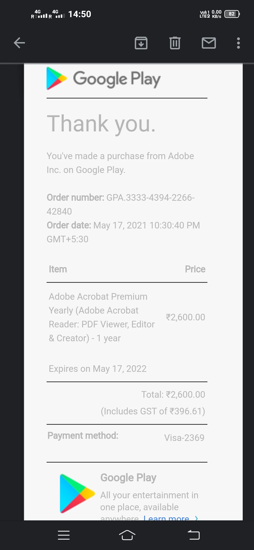 FOr Android devices , Google manages the Acrobat Reader premium subscription purchased from Google Play Store. You can cancel your subscription using the Google Play Store app on your Android devices. For step-by-step instructions, see Cancel, pause, or change a subscription on Google Play. For billing issues or a refund within 48 hours of purchase, see Get a refund on Google Play. After 48 hours, contact assisted support