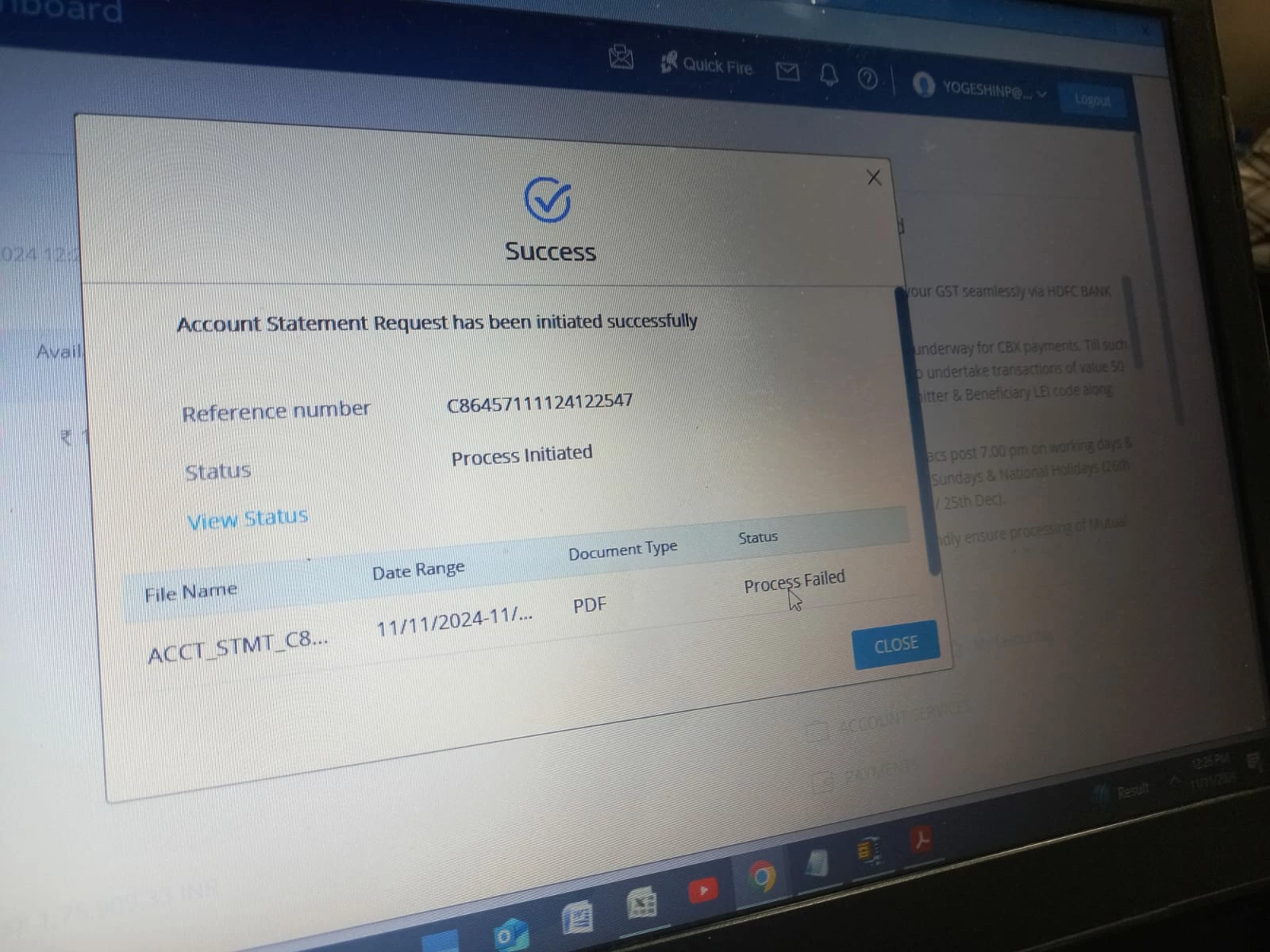 Regarding pdf not download from hdfc net banking