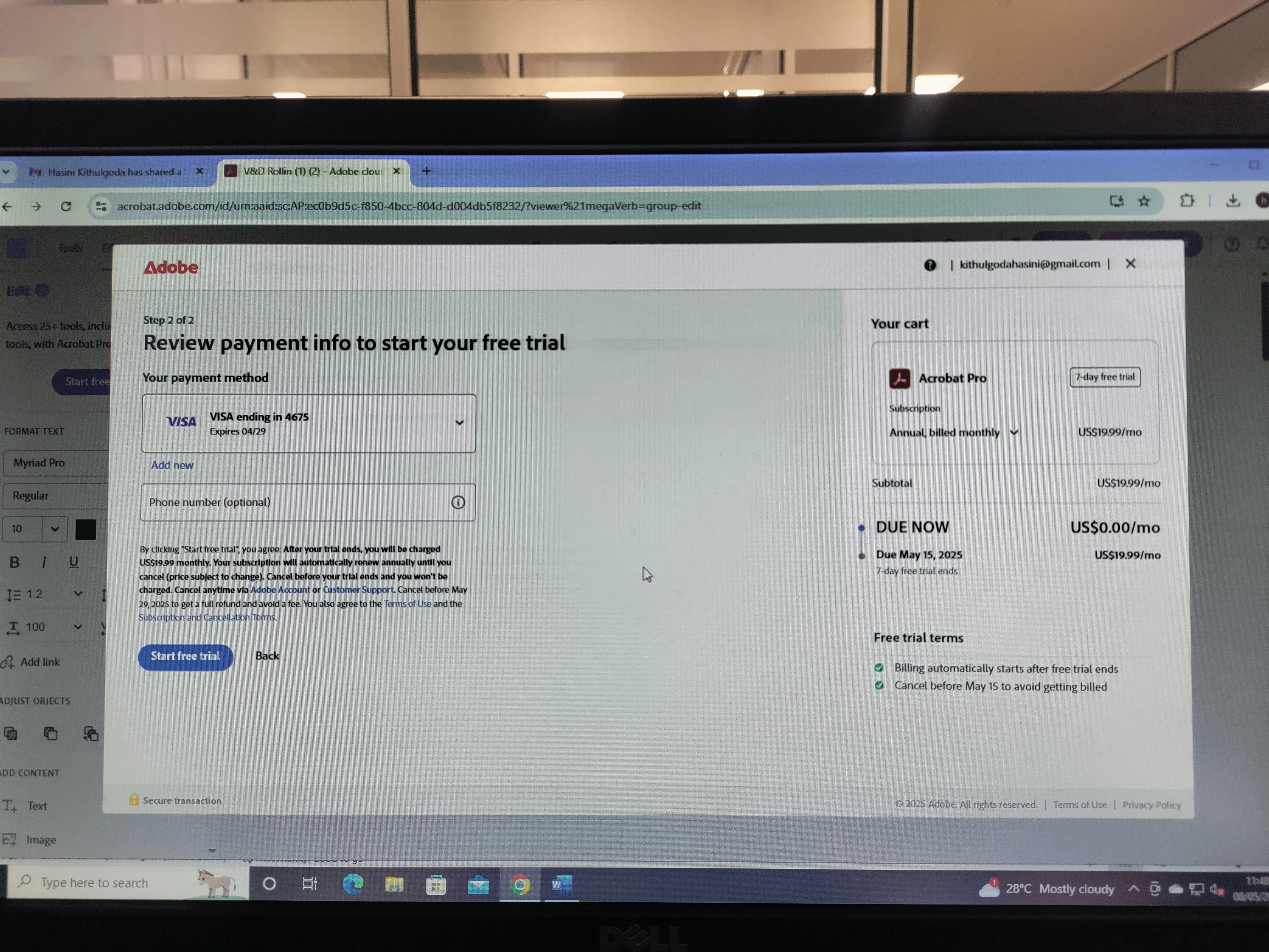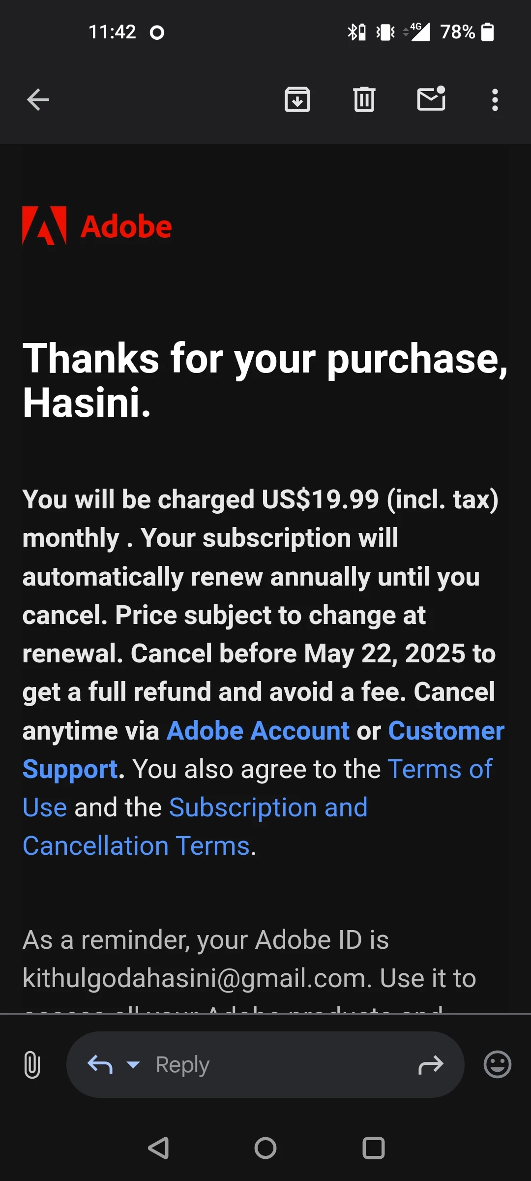 On 08th May I was trying to activate the free trial of your app. When I was trying to activate, the window appeared as no due charges on 08th May & I will be charged US$ 19.99 on 15th May after free trail ends. (Have proof). But at the same time of activating the free trial, US$ 19.99 was charged from debit card. Being very disappointed I deactivated the subscription on the same day. Then got an email saying that you will refund the charged amount as I deactivated the subscription. (Have proof) Today is 23rd of May, but I still didn't got the refund.