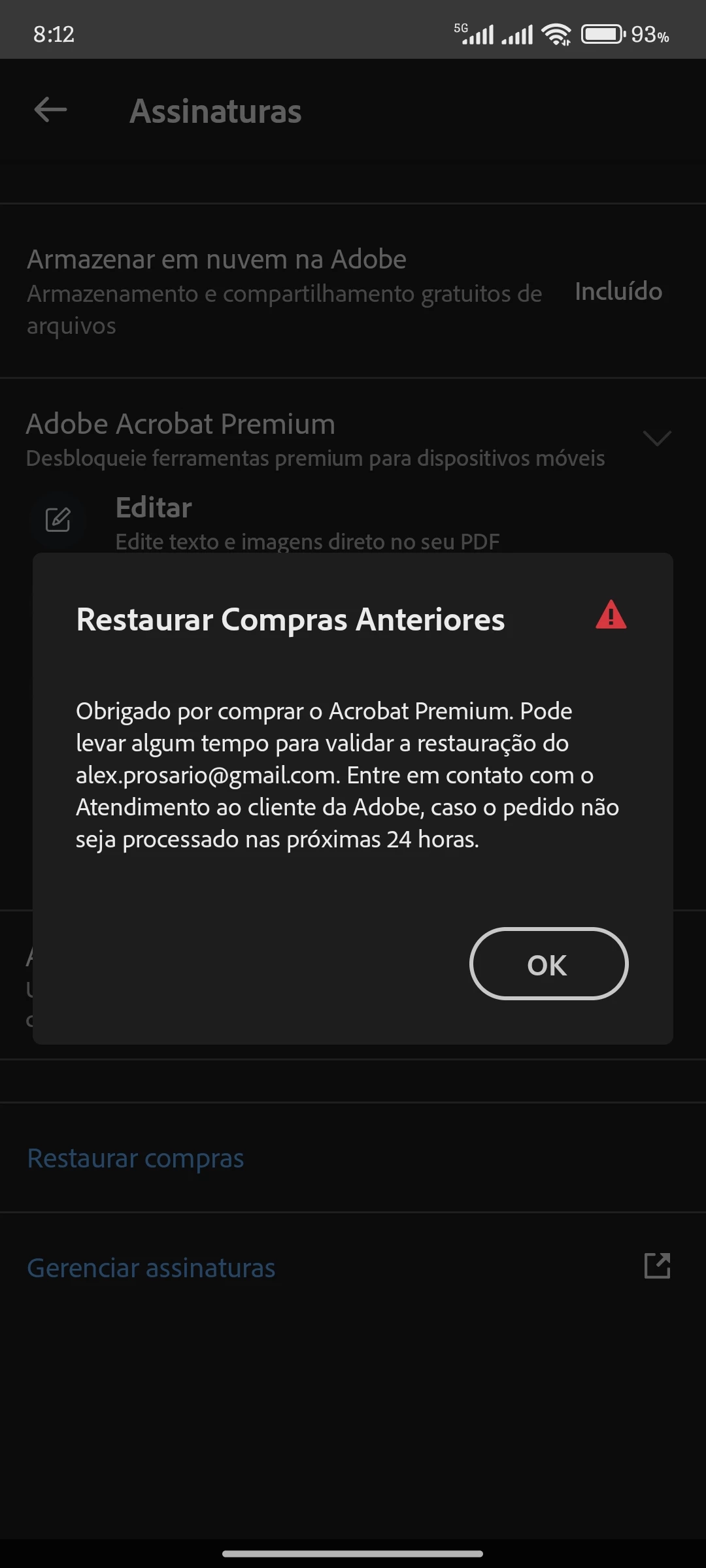 Efetuei o pagamento da assinatura do aplicativo ontem, mas até agora não liberaram as funções Premium ainda.