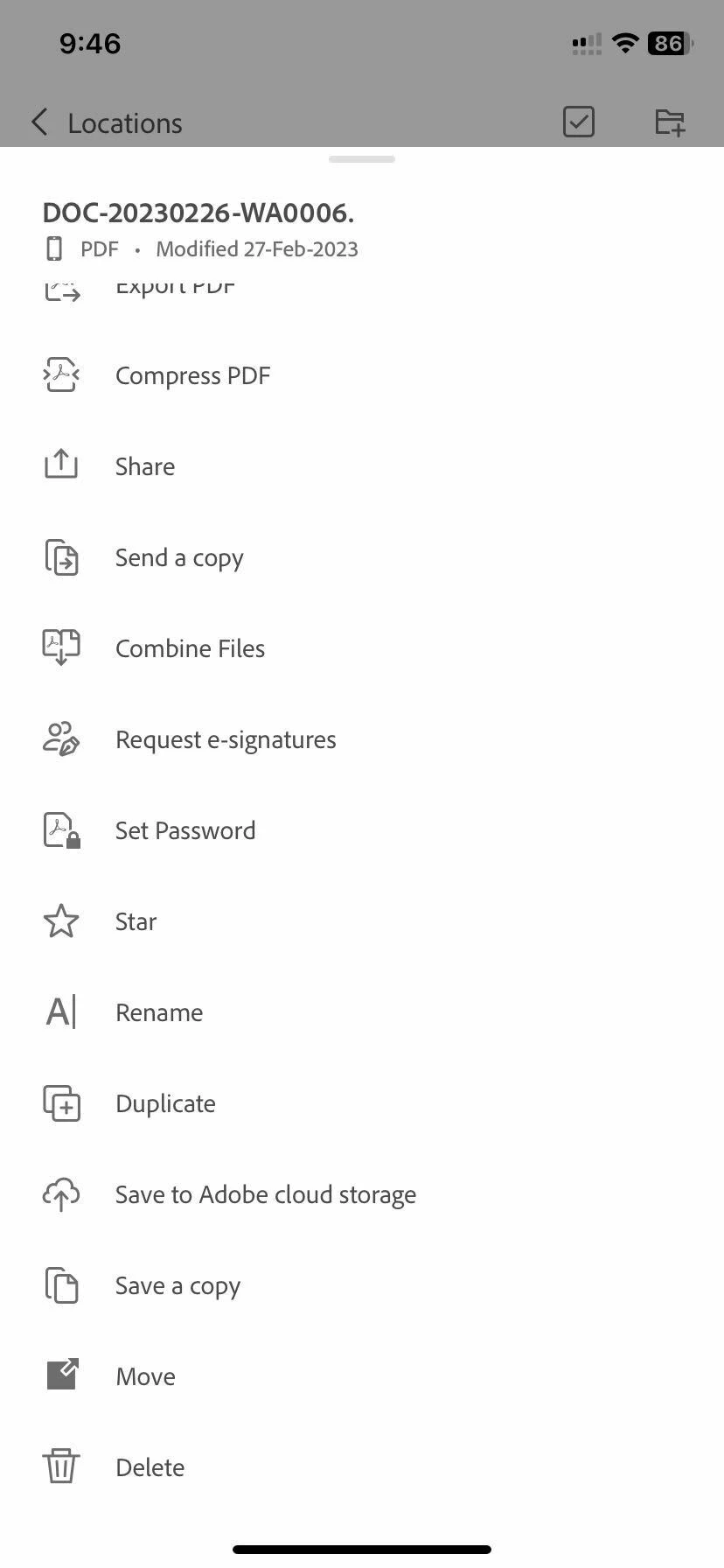 I created a folder titled 2-1-21 Wreck within my Adobe Acrobat app (iPhone 8 Plus IOS 14.4.2). I have created five sub folders within the “wreck” folder. However, I cannot find ANY way to move or copy any file from the recent documents list (or when I have one of the documents open) to one of these created folders. Is there a way? There must be or there wouldn’t be the option to create folders. I also have Adobe Acrobat on my MacBook Pro 2019, but I've used it only on my phone. Any advice would be appreciated. KBergin