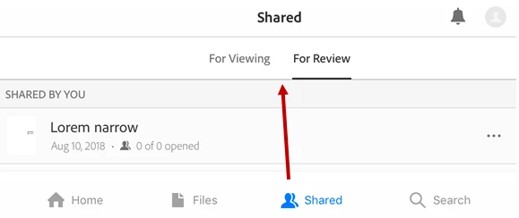 You can easily determine a file's share status since the app’s file lists indicate whether a file is simply Shared (view-only) or in Review.