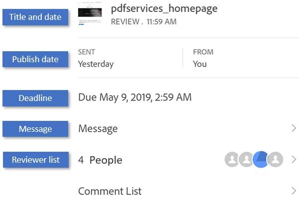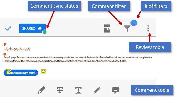- Reviewing files: The review feature allows you to add comments and annotations, edit comments, reply to comments, and receive notifications when there is activity on your thread comments. When you receive a review invitation email, click the link. Clicking on a link in 3rd party mobile apps automatically opens the Acrobat Reader in the review.