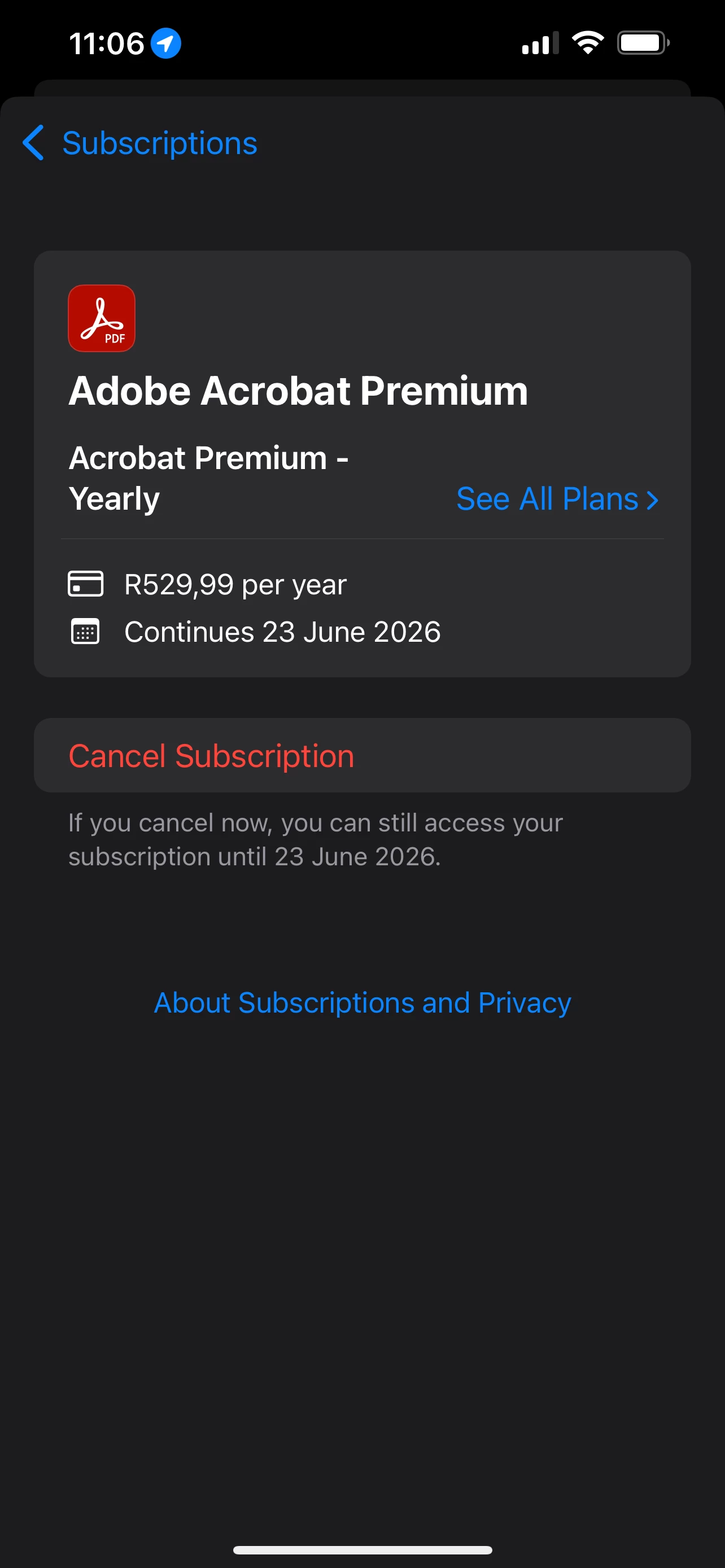 I have checked your Adobe account linked with the Adobe ID (Apple masked ID) you are using on this community and unable to track any active/paid plan for Acrobat premium.