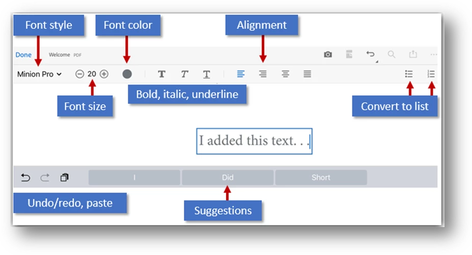 Editing is now available in the Acrobat Reader mobile app, on iOS and Android. Acrobat Pro DC subscribers can now easily change text, formatting, and edit lists or add, rotate and resize images in a PDF with just a few taps.