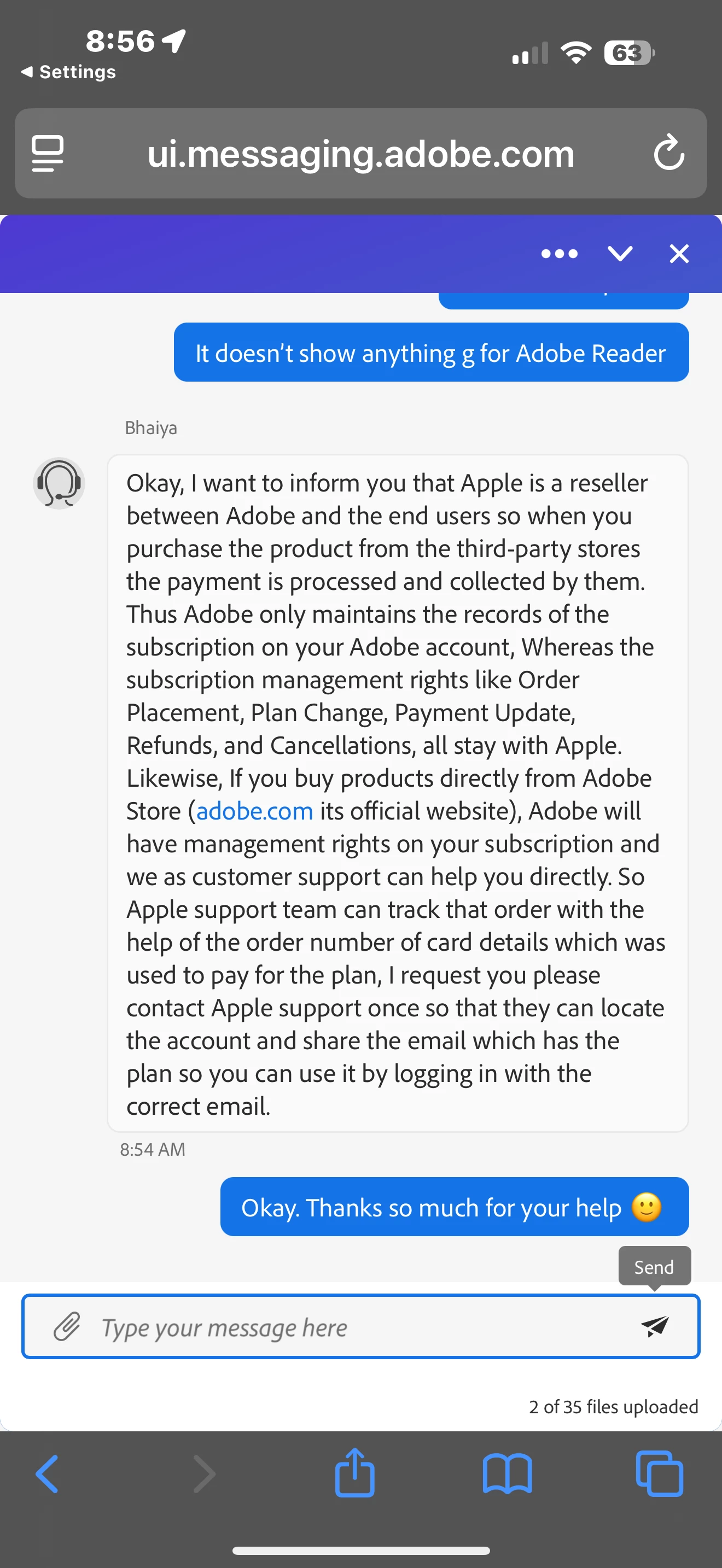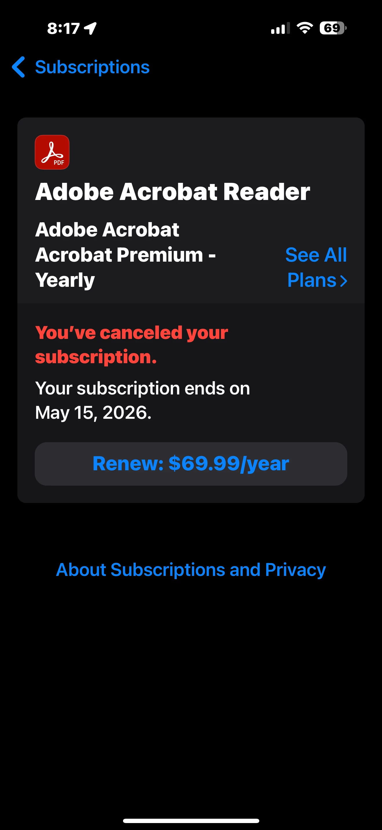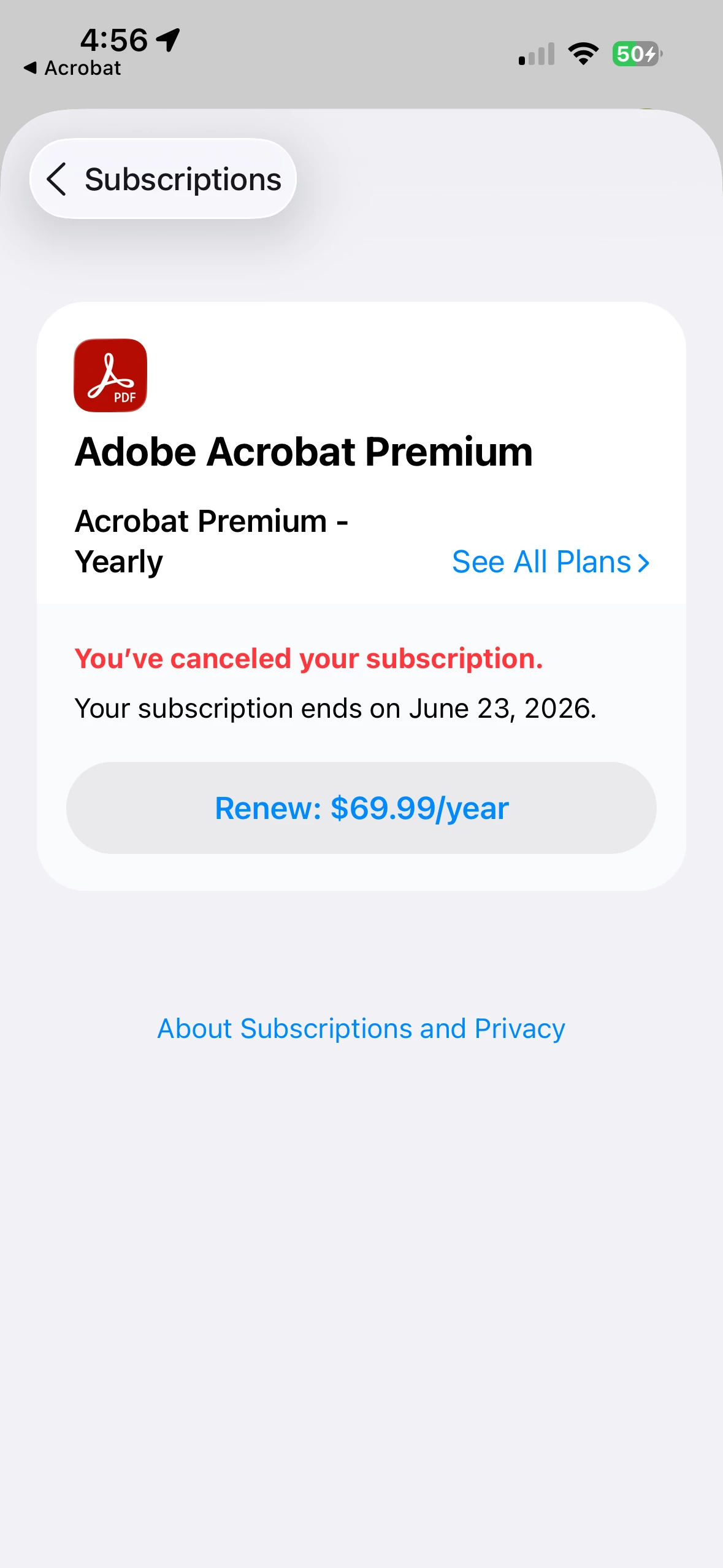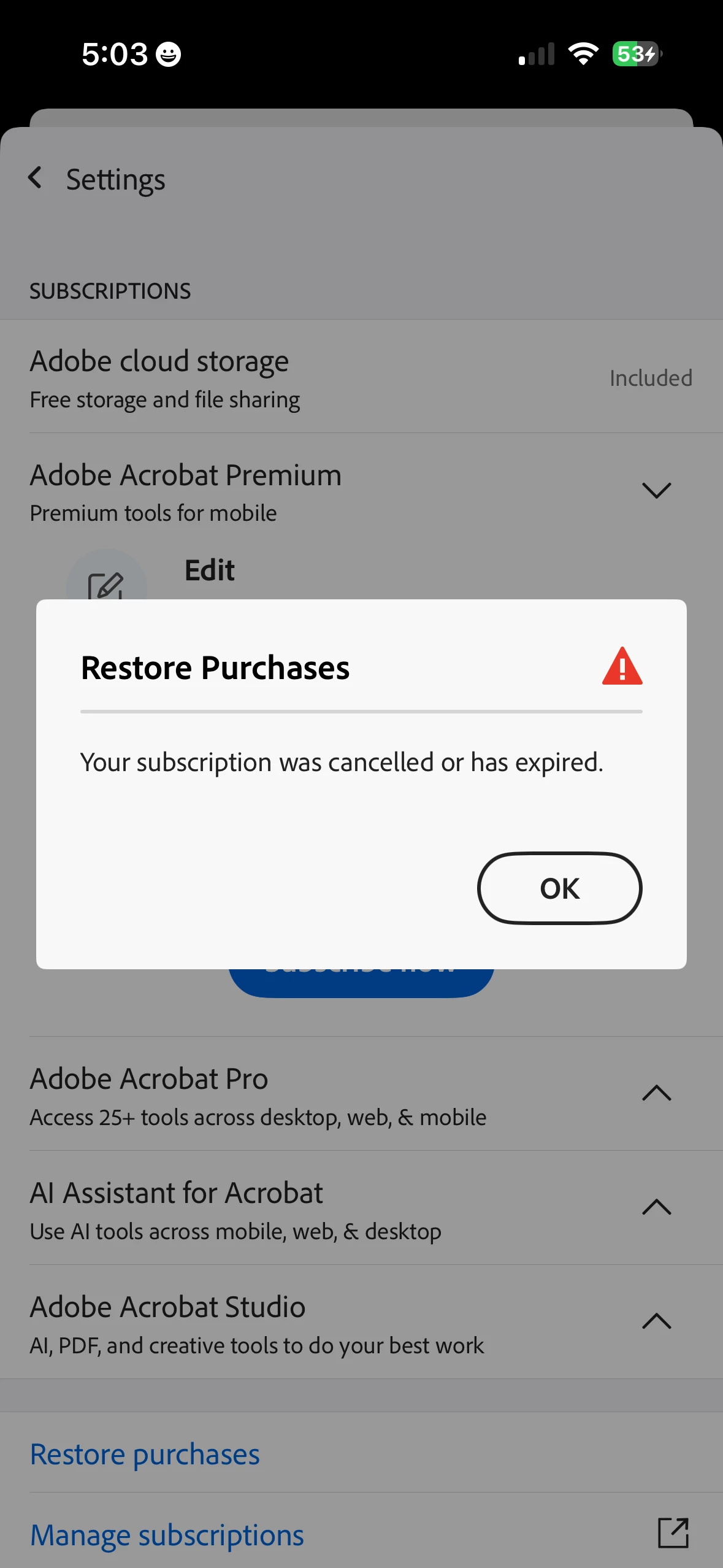 I paid for a Premium Subscription that expires 5/15/26. It shows in my AAppleid subscriptions, as well as in the Adobe App information when I view the information via the App Store. I've reached out to Adobe Support who advised me to reach out to Apple show advised em to reach out to Adobe... someone please help me figure this out 😩