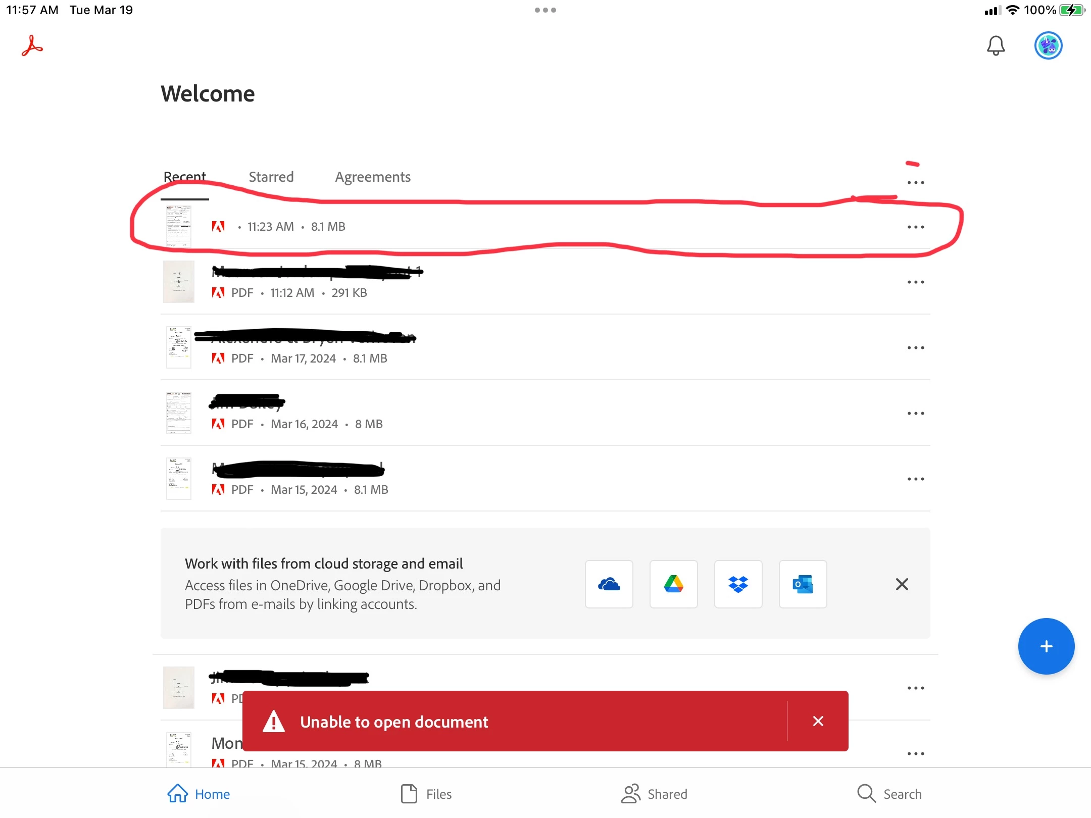 Unable to open document