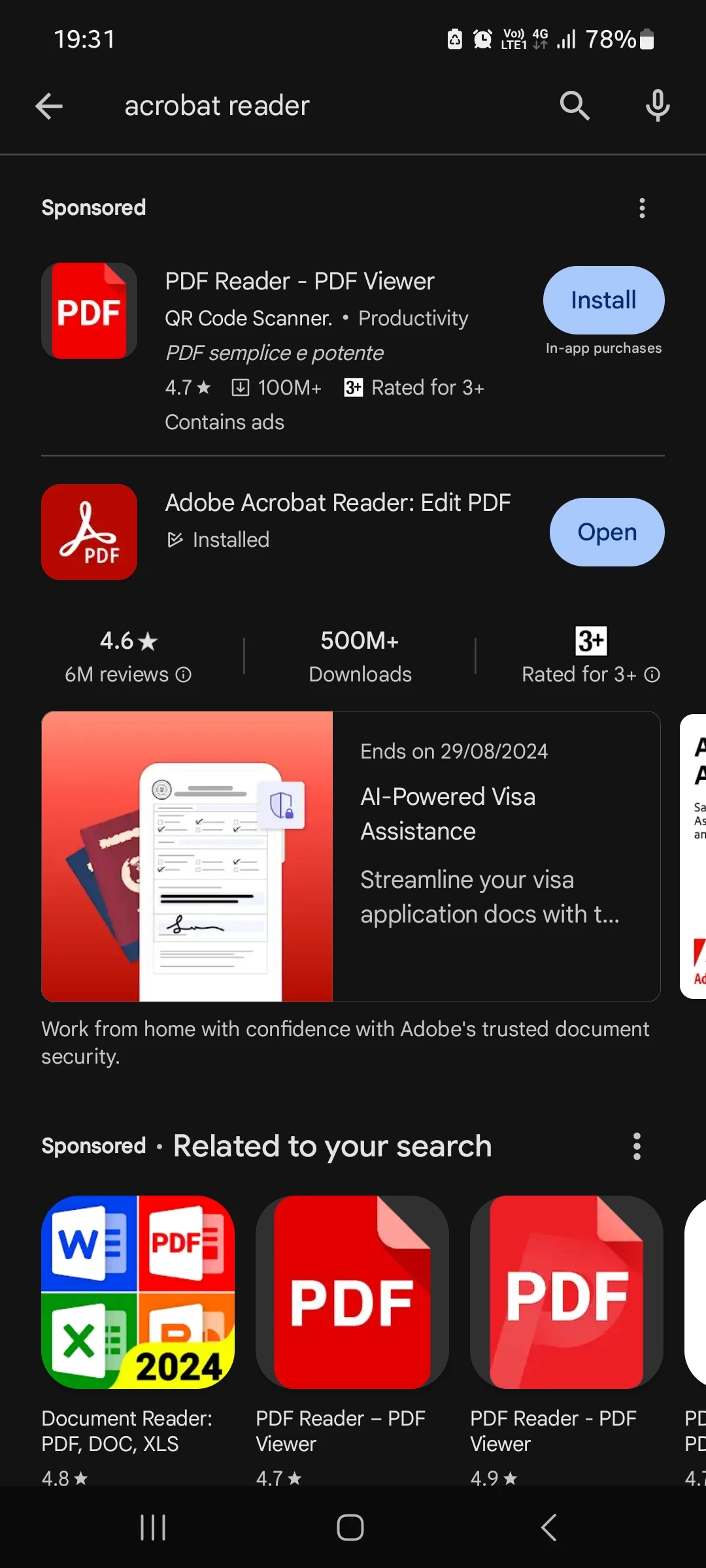 I am using android  version 13 and adobe  acrobat  reader.  There is no update when I checked Google playstore.