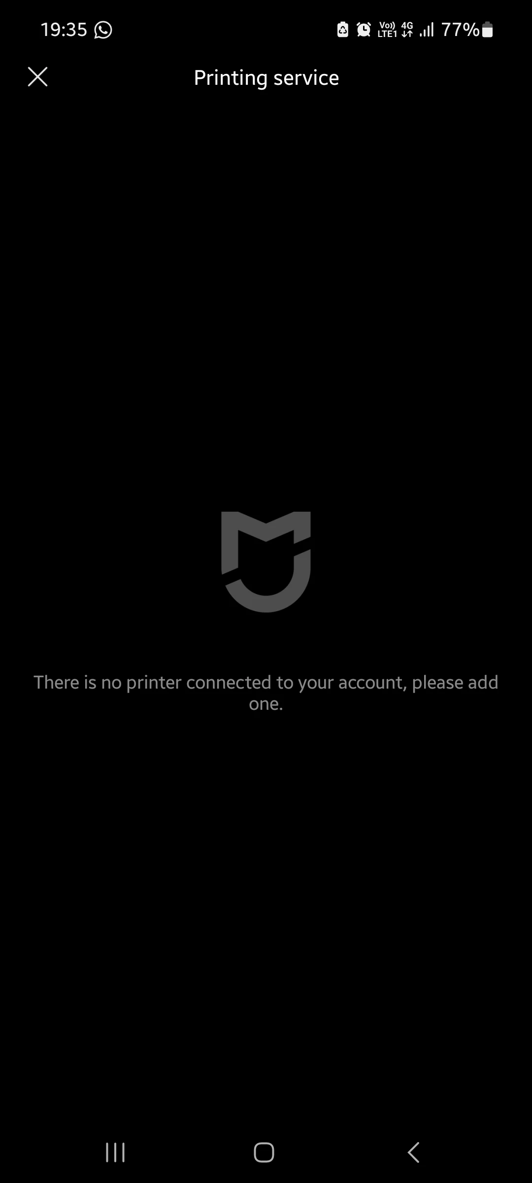 " there is no printer connected to your account. Please add one"