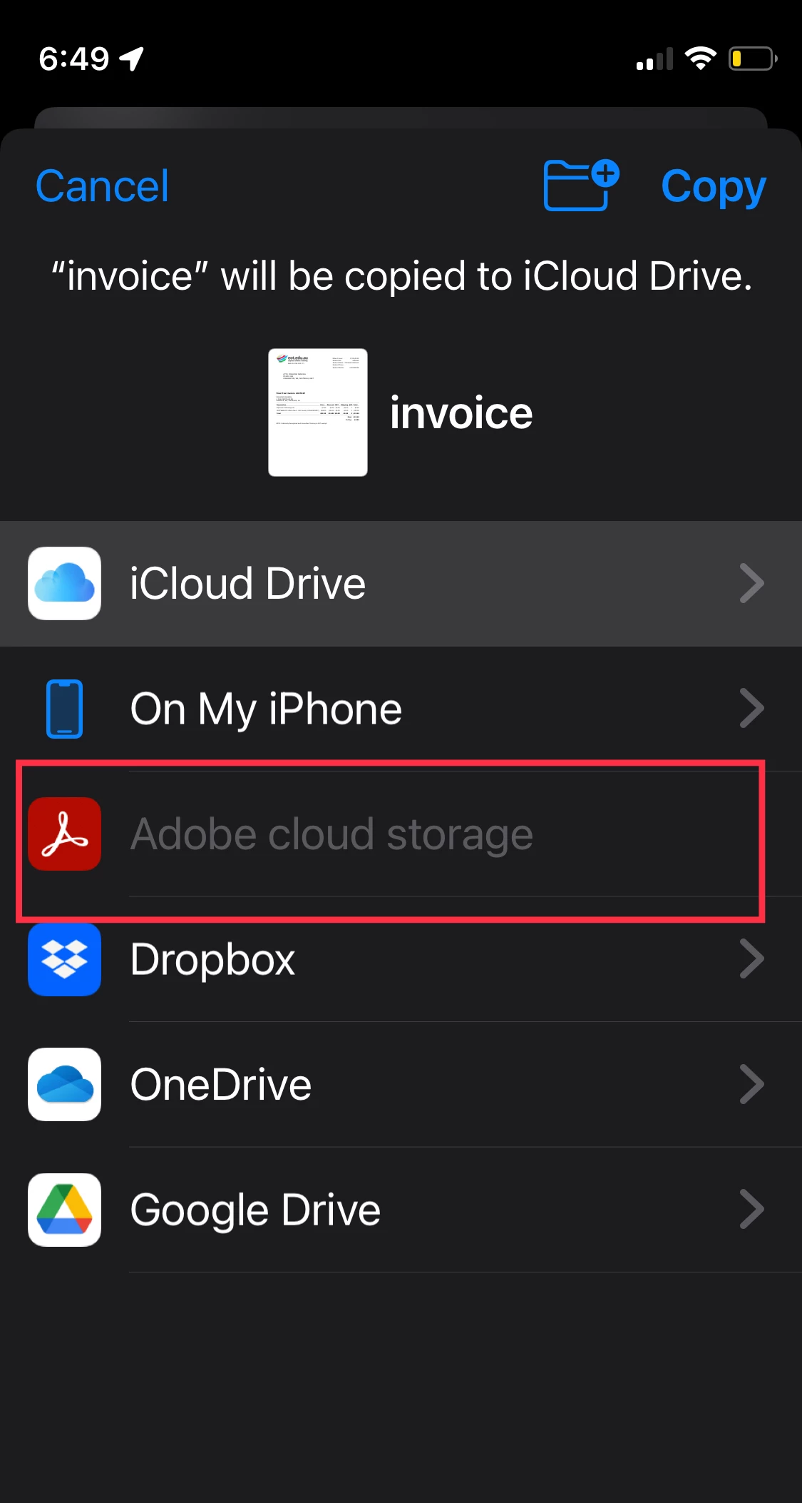 My iPhone recently updated to the most recent version of reader 22.03.00 (20220315.164653). Since then, I have been unable to save documents to the cloud from my iPhone, which I was able to do previously. I recently also updated iOS to 15.4 (19E241) and I'm using an iPhone 12 Pro Max. I tried signing out and back into acrobat reader, but that didn't solve the issue.