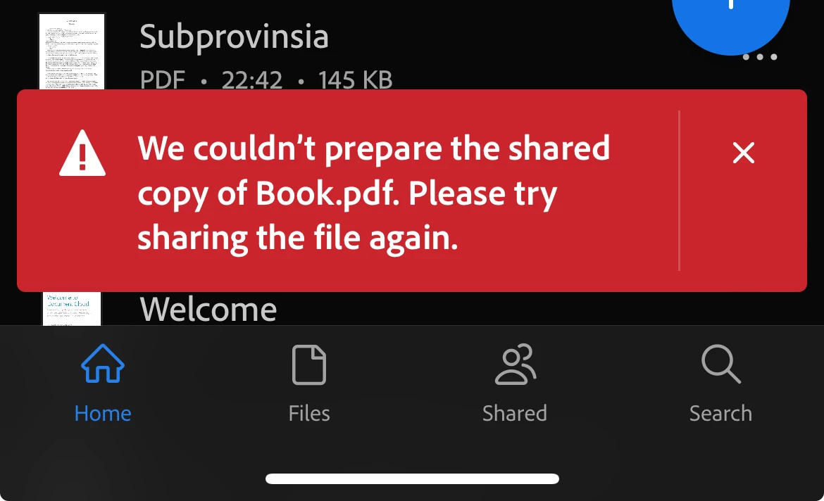 We couldn't prepare the shared copy of saidfile.pdf. Please try sharing the file again.