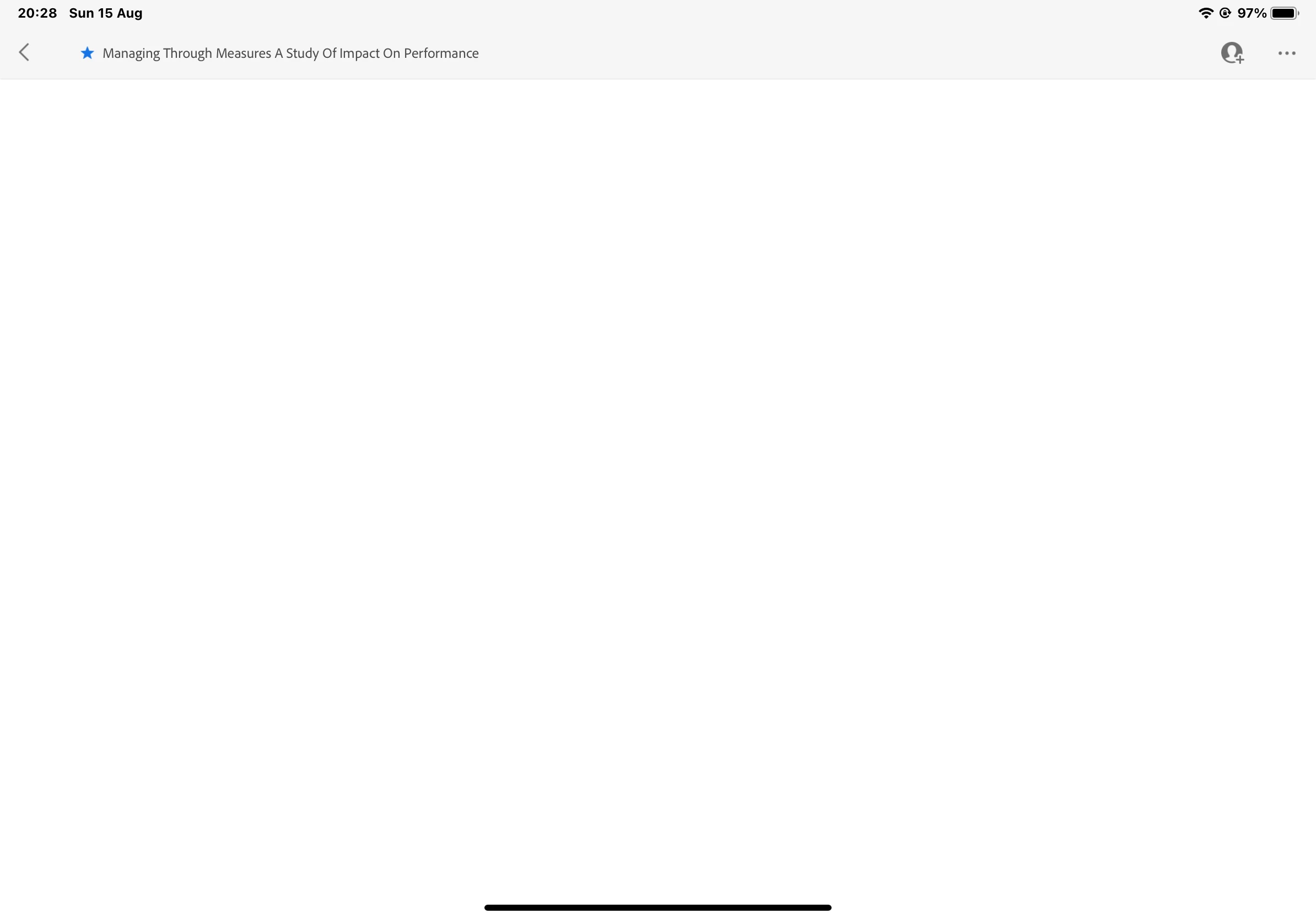 Some documents in my cloud won't open using iPad acrobat pro. It shows a white screen. Note if I choose a different document, it will work. This problem occurs only on iPad acrobat pro. Using acrobat for iMac shows no problem with that document.