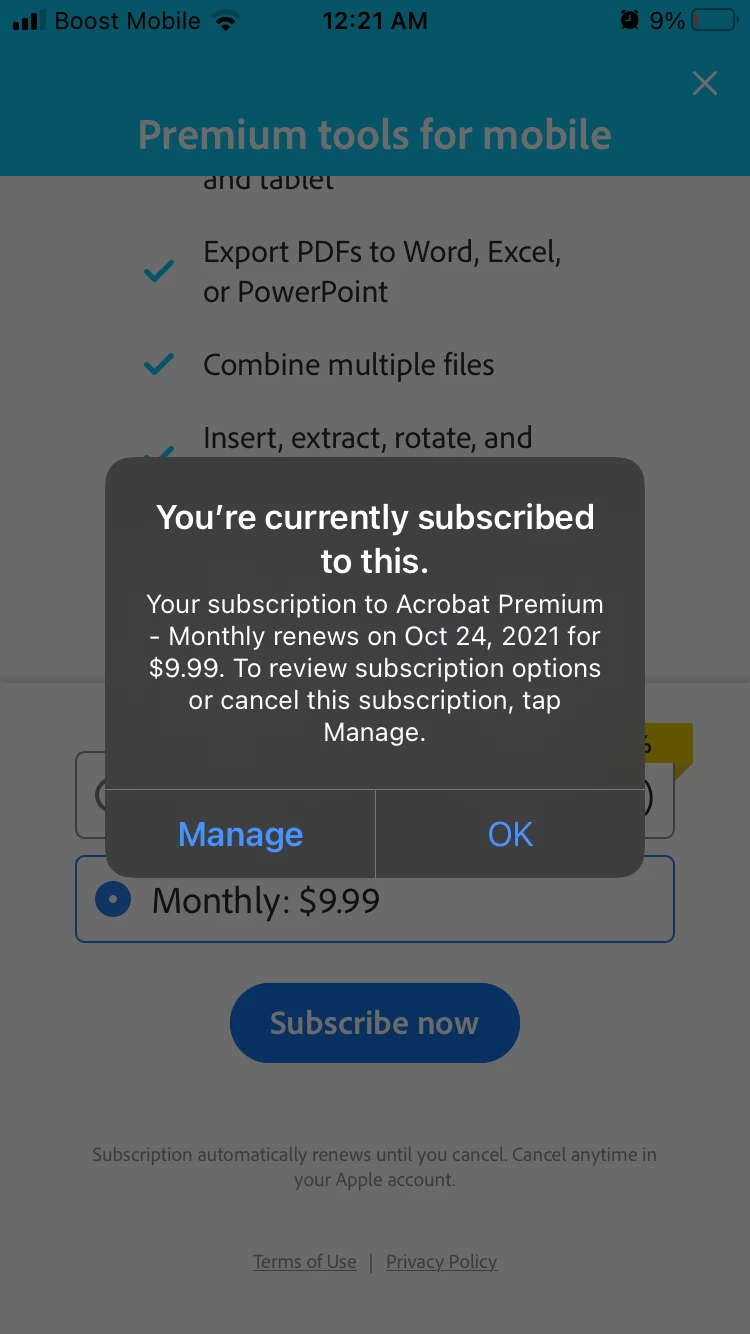 It says I need premium which I already have. I was told to restore purchase but an error message pops up. What am I paying for if Adobe won't even recognize my purchase?