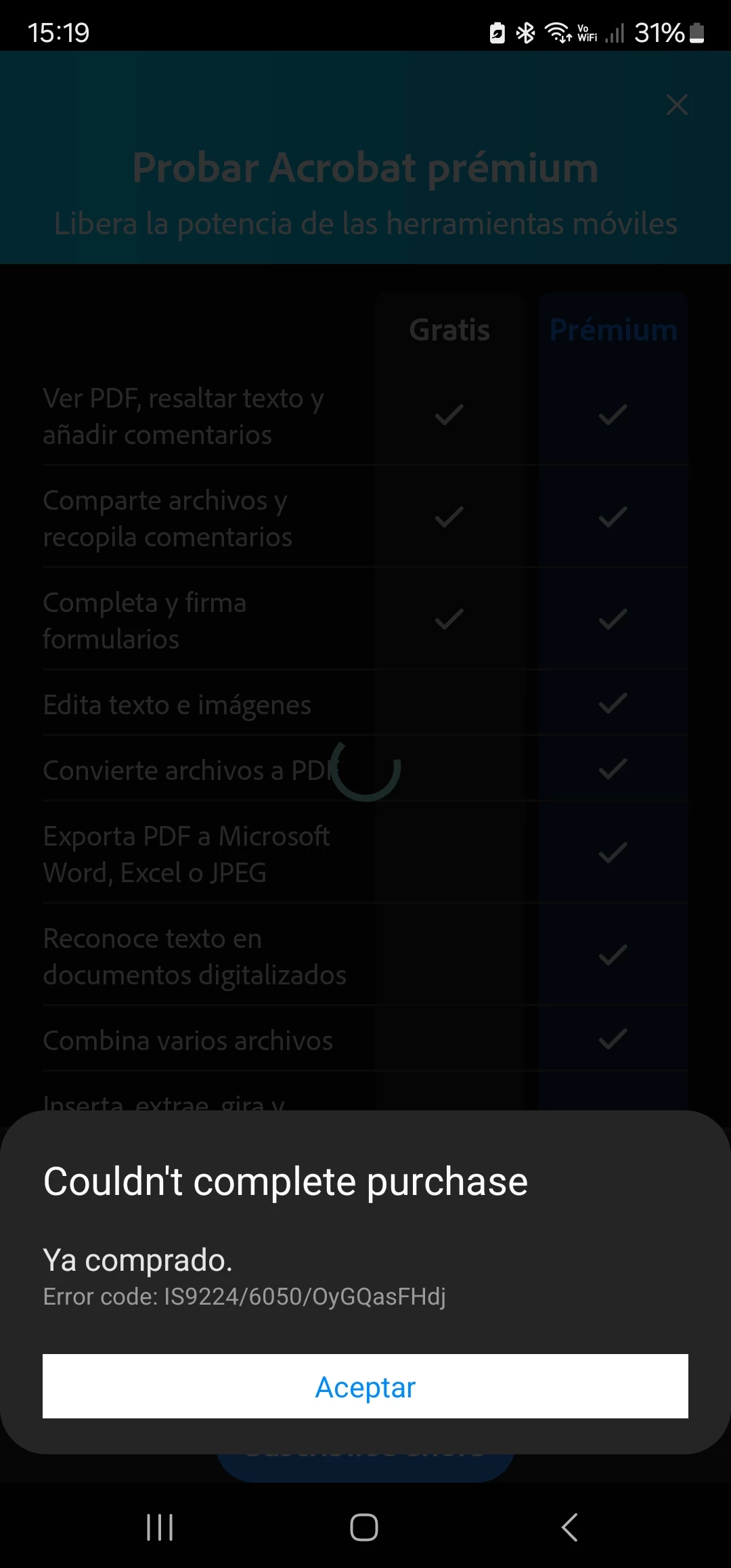 Pagué mi suscripción para usarla en mi Samsung galaxy pero sigo apareciendo como usuario con versión de prueba