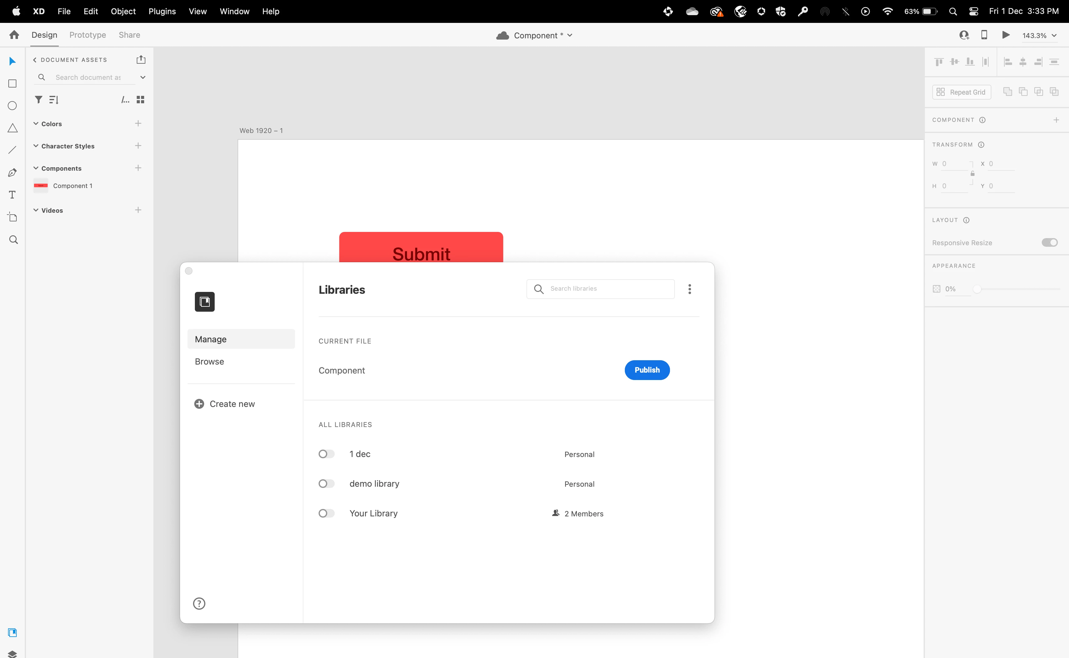 Unable to publish any component to the library