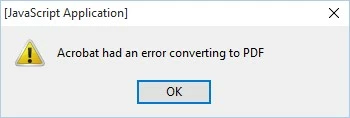 Acrobat had an error converting to PDF [JavaScript Application] Adobe Acrobat DC - Create PDF Firefox extension Add-on