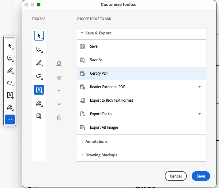 Acrobat Pro Customise Toolbar does not work.