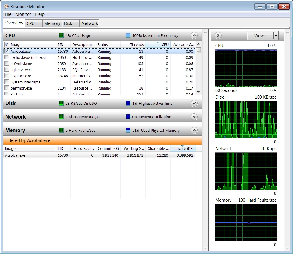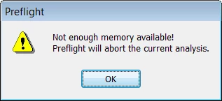 Acrobat Pro Preflight aborts analysis with "not enough memory" on 64-bit Windows 7 despite free/available memory
