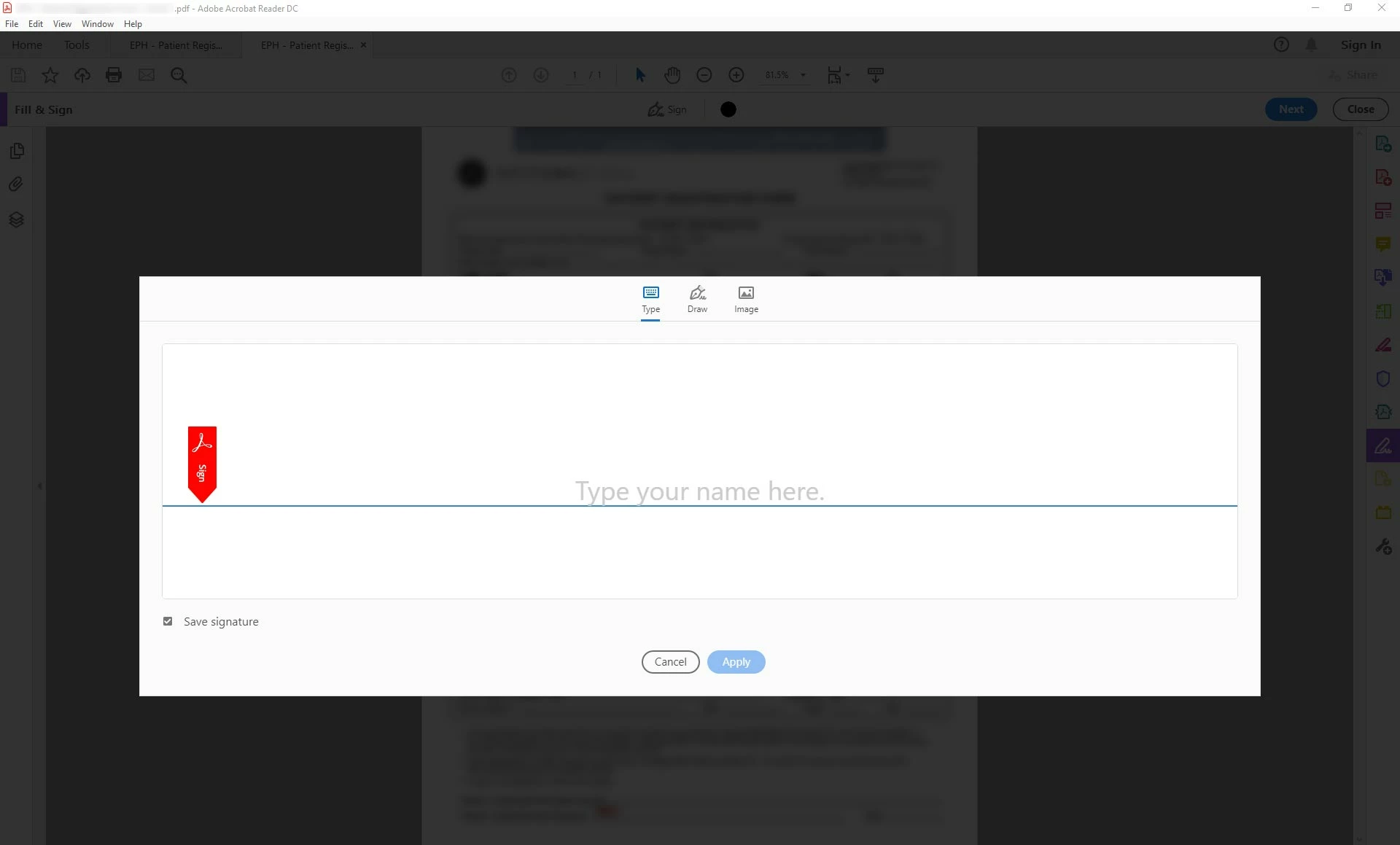 Ideally, I'm hoping clicking/tapping that field would be able to go straight to the Type/Draw/Image "Type your name here" modal overlay (see attached screenshot). Is there a JavaScript action that can do this, or otherwise remove the requirement for a Digital ID? Would this cause compatability issues on other devices mobile devices?
