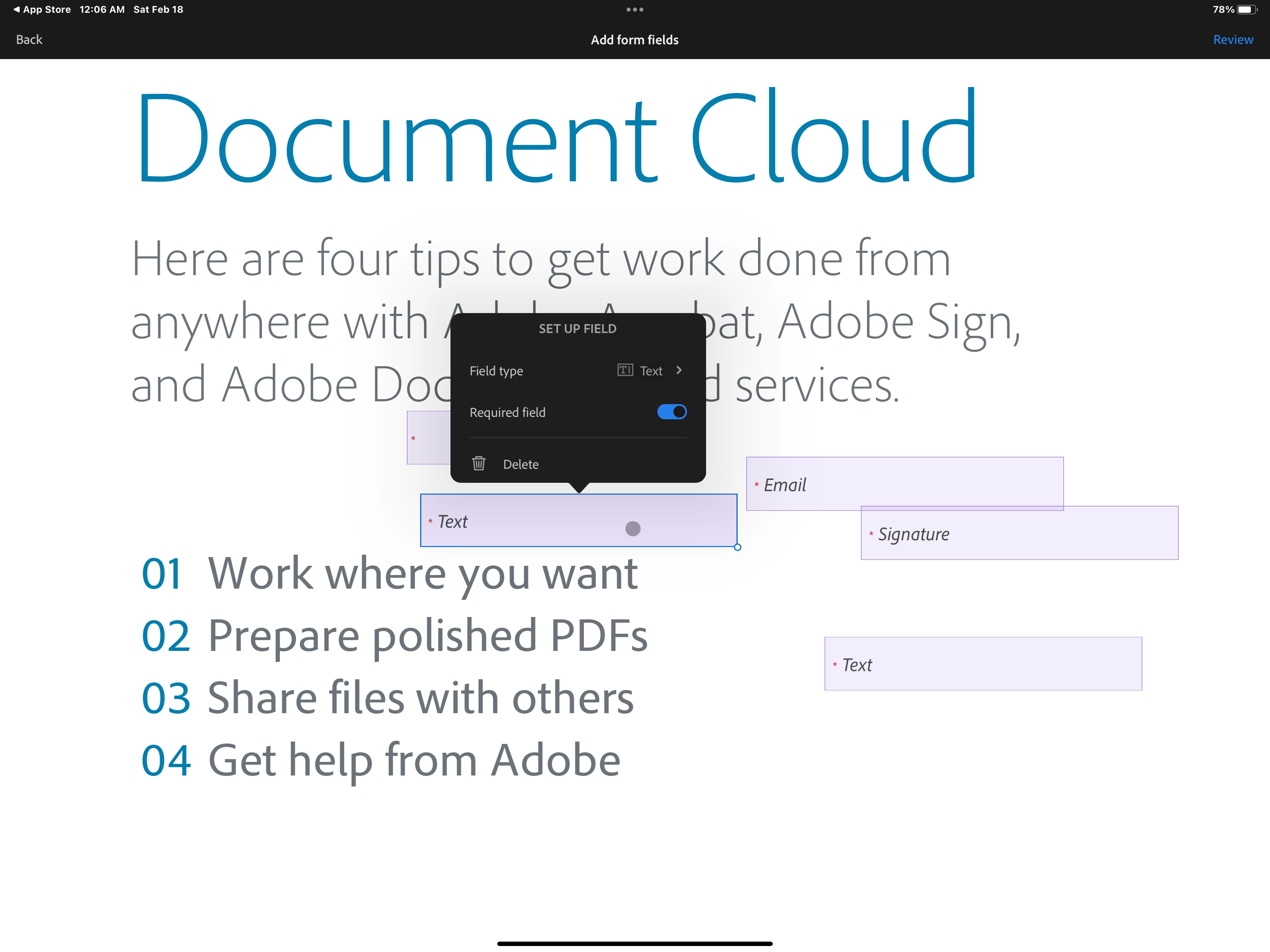 I want to add 2 signature fields at the end of a report template, for a company representative and also for a customer to sign. I don't want the "Fill and sign" or "Digital signature" option, but an option that is gonna make it possible to click on the field and then open a window where I can sign it with either a stylus or a finger. Unfortunately, I have been searching for a while but whatever I google, it just gives me the "how to add your own signature to the PDF", which explains how to scan a signature and the paste it wherever on the document.