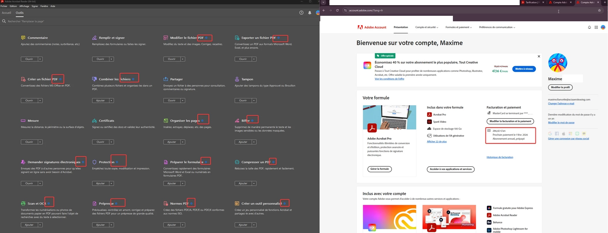 I’ve problem with adobe acrobat Pro, I’m well connected to my account (license expirat in Febuary 2026) but all the tools with blue wheel doesn’t work and ask me to pay again see below.