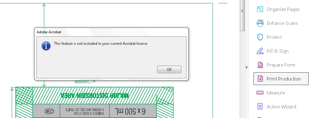 adobe acrobat Pro DC Print Production error: feature is not included in your current adobe license