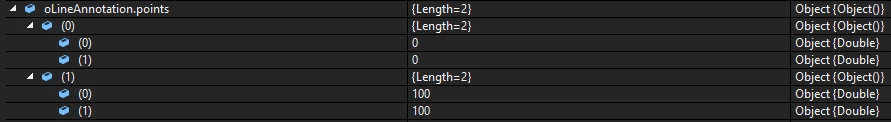 oLineAnnotation.points = New Object(1) {New Object(1) {100.0, 100.0}, New Object(1) {100.0, 100.0}}