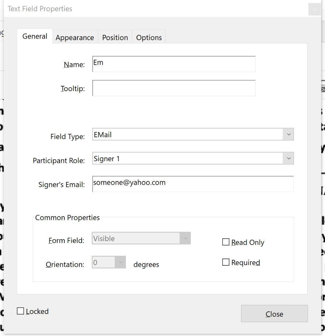 Manually entered Signer's Email in Field Properties