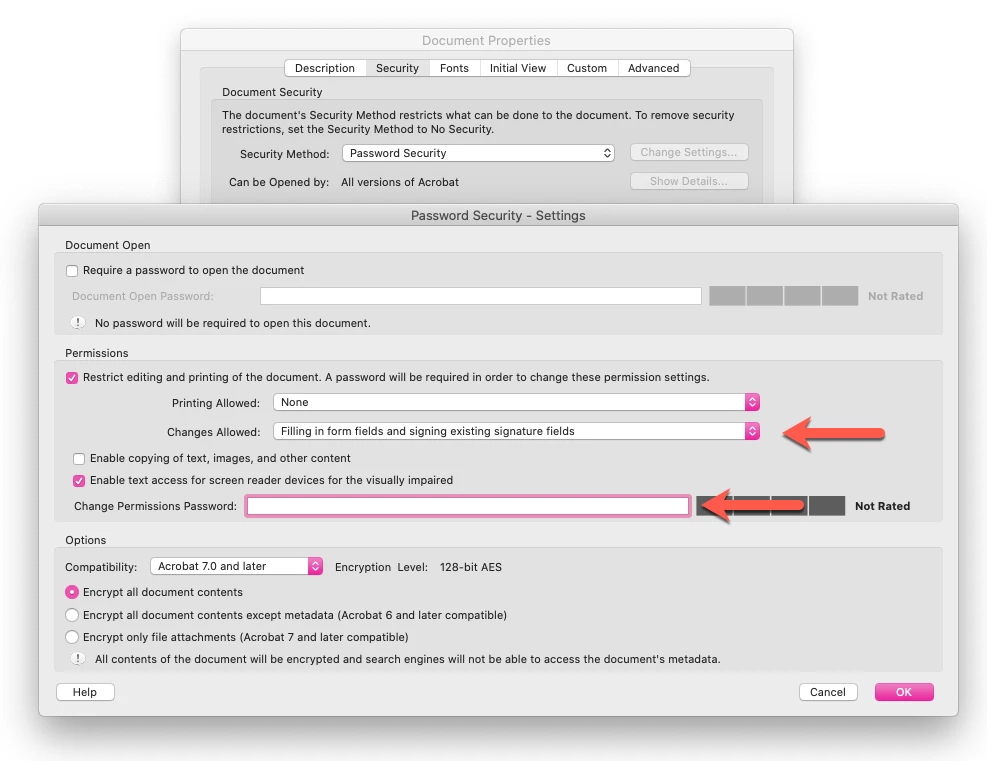 Best way to Secure PDF but still allow text fields to be filled out?