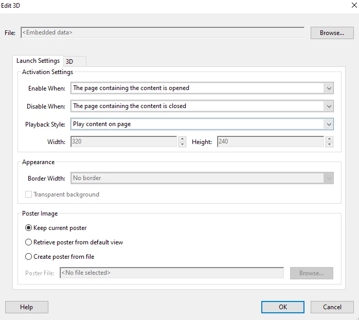 and i have another query also , when ever i open the 3D pdf ,it started playing automatically.