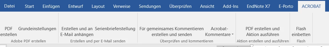 I'm using Acrobat DC in Win 10. In Microsoft Office 2016 (Word, Power Point) the buttons in the Acrobat Tab/ Ribbon are missing. Only the text is visible. How to solve the problem?