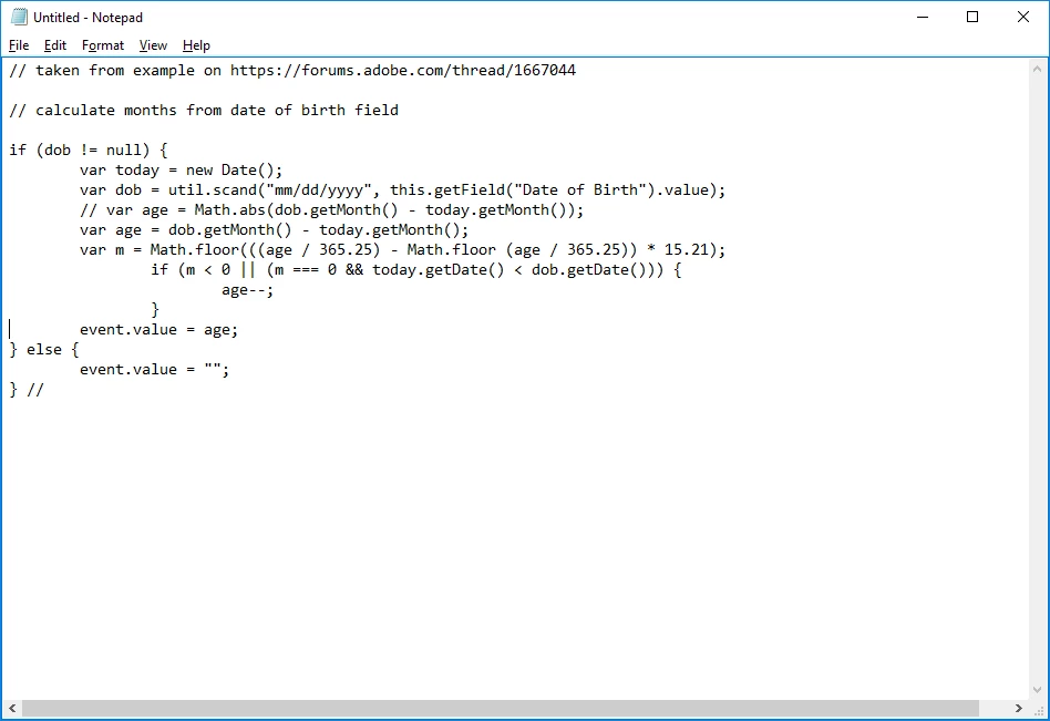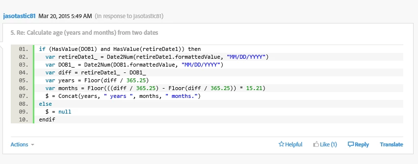 I found the following script (linked below) that worked just fine in calculating the age of the user in years, but I'm having problems customizing it so that it will do the same for months. Even with the little changes that I made, it seems to almost work except that it doesn't show months from 1-11. Case in point, see the screenshot below. At the time of this posting (April 2018), if the Date of Birth is in June, shouldn't the script calculate that the user is 32 years and 10 months old?