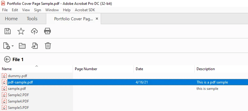 Not sure if if helps, but I added an image of the PDF Portfolio.